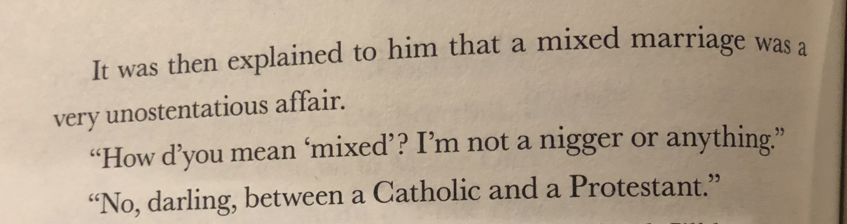 >>25034509>You can see how it’s racist but not hateful.lmfao do you genuinely not understand that "nigger" is being used contemptuously as an object of disgust/revulsion in that phrase? Waugh's not using it as a synonym for "black" (or "negro," or "colored," whatever he would've said) on purpose. that's what makes the joke land. it's not "you are humorously acting as if my skin tone is black, but in fact, as you can see, my skin tone is white, ha!" it's "when you say 'mixed' I am humorously implying to the reader that this character thinks that this other character is saying they're vile, disgusting, socially unacceptable." I thought this was the /lit/erature board, I shouldn't have to explain Waugh to you like you're a 10th grader.