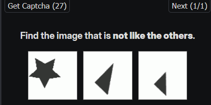 >>25042204lol mine are like 4 pages of "find the page with 2 4 spiked stars" and the pages are all full of stars either 4 prongs or 5 prongs each and blend in with each other. or like 'find the correct shape' and it's a bunch of weird shapes all rotated differently. might get anywhere from 1-3 trials of that for a single captcha too. it's an actual slog