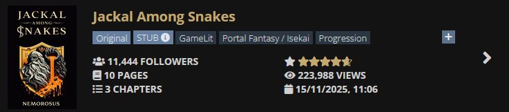 I've read up to chapter 14, when MC accepts to take an apprentice, and I got to say, this is very nice, wholesome, and relaxing. Hardly any violence, no swearing. Obvious Frieren influence, which also is 90% slice of life and only 10% fighting assorted monsters and somewhat organized demons (equivalent of videogames bosses).Primal Hunter had me believing RR only wants to read about murderhobo protagonists killing everything they see in the most brutal way possible. I'm glad this is not entirely true. Maybe my (in process) magical girl fiction will meet some degree of success when I finally manage to publish it.Thank you ArcaneCadence for proving wholesome webnovels can be popular too!