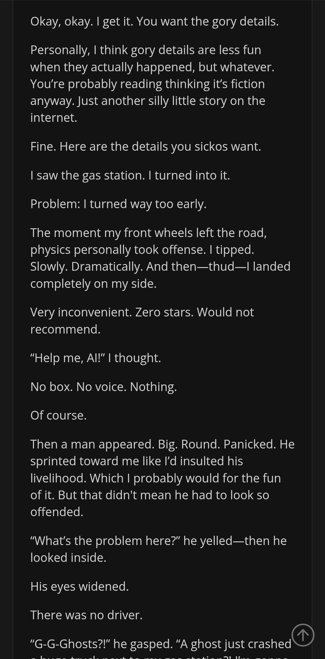 Sauce: "Reborn As Truck-Kun" by "Katie Burk". It's on Royal Road, the same platform Dungeon Crawler Carl is, where I am reading it for free.