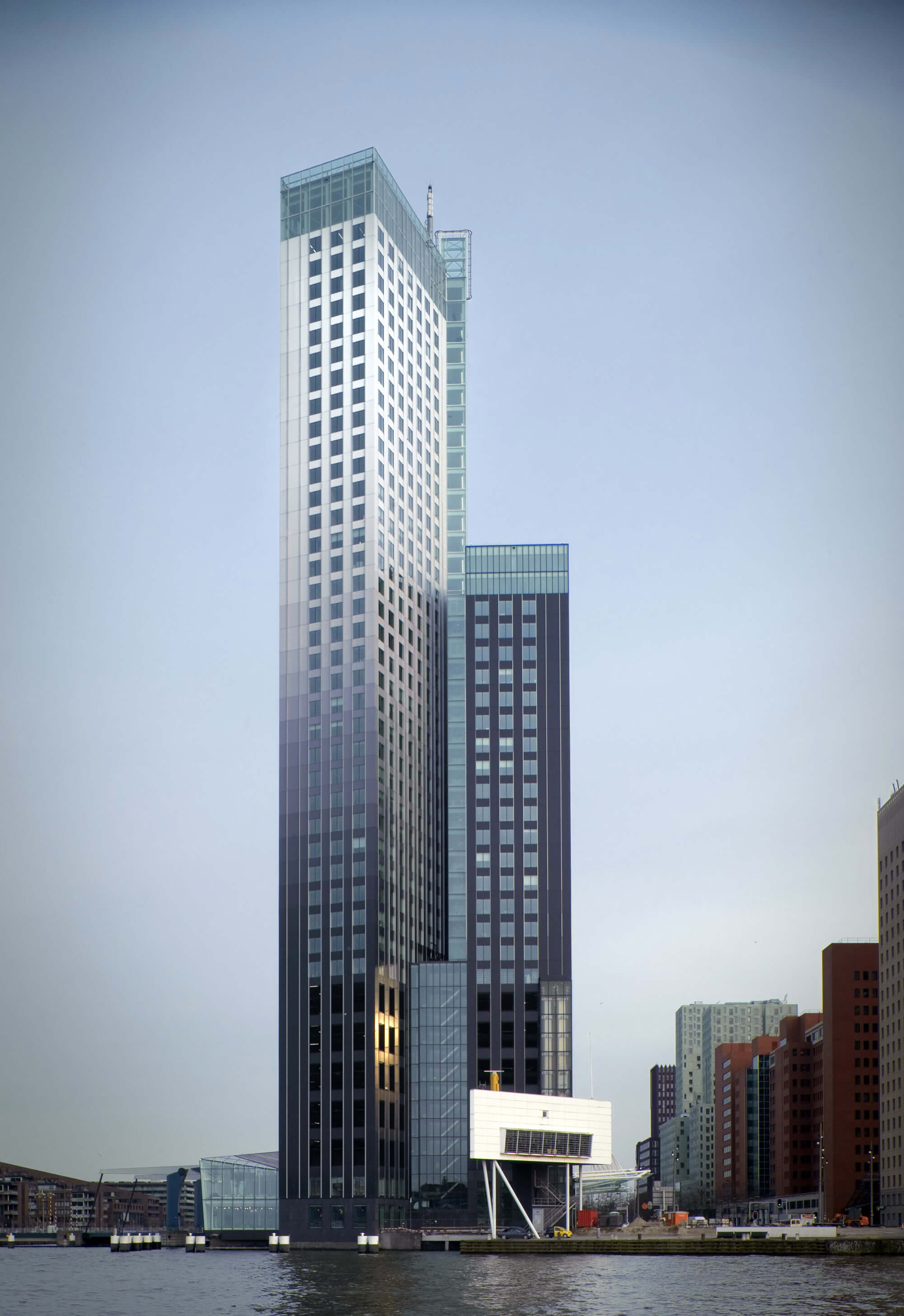 >>25048744I was new-ish at the job. I think about 4/6 months in. Was on another project nearby (maastoren, see pic) and got told to help someone doing work in De Rotterdam.I went there with a bunch of tools on a trolley, I had to drag it about 350 meters. We entered the building and found someone nearing retirement who welcomed us. It was a colleague I hadn't met yet. He was the guy monitoring the building and occasionally doing repairs.The building was quite empty, it was during covid. We went a ways up I think about 3/4th of the building. Opened a shaft and saw a pipe leaking. The older guy went and shut off a valve and I had to bleed the system of water. That took a while and once it was done I had to cut off a piece of pipe with a Sawzall and attach a new piece first by making new wire on the existing pipe. That machine is heavy as shit and can easily twist your wrists but I got used to using it in the Maastoren. So I did that and then wrapped it up and attached the new piece. Work was done.Then I spoke a bit with my two colleagues. One of them mentioned a footballer named Nicolai Jorgensen lived here and how many players from Feyenoord do.After that it was back to the Maastoren which was my favourite place to work ever. Entire building was empty due to covid. All the expensive coffee machines were still stocked and the view was amazing, it snowed.