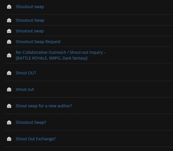 >>25055226nothing quite like the random royalroad PM begging me for a shoutout swap to make me feel in charge