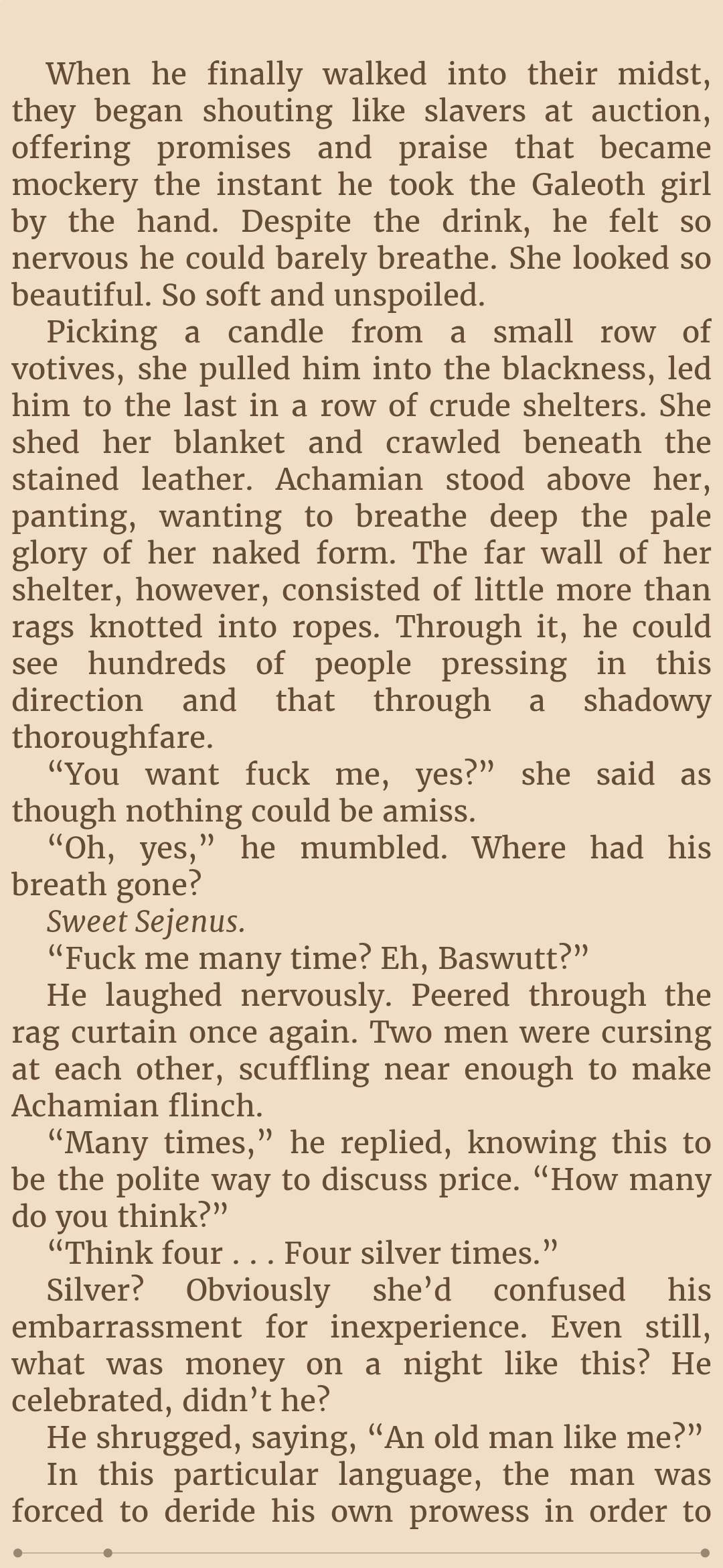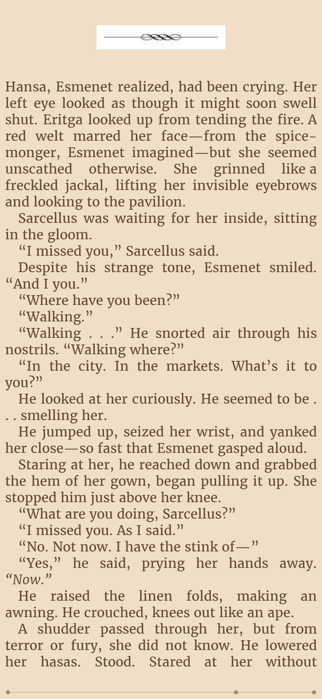 Ever since the introduction of Serwe the writing has felt fucking meandering. How many times am I going to get an entire chapter focused on nothing but the thoughts of a woman about another man impreganating her or having sex with her, as something vaguely relevant and "important" happens in the backgroundBO-ring