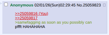 >>25059816>>25059817>samefagging as soon as you possibly canpffft HAHAHAHA