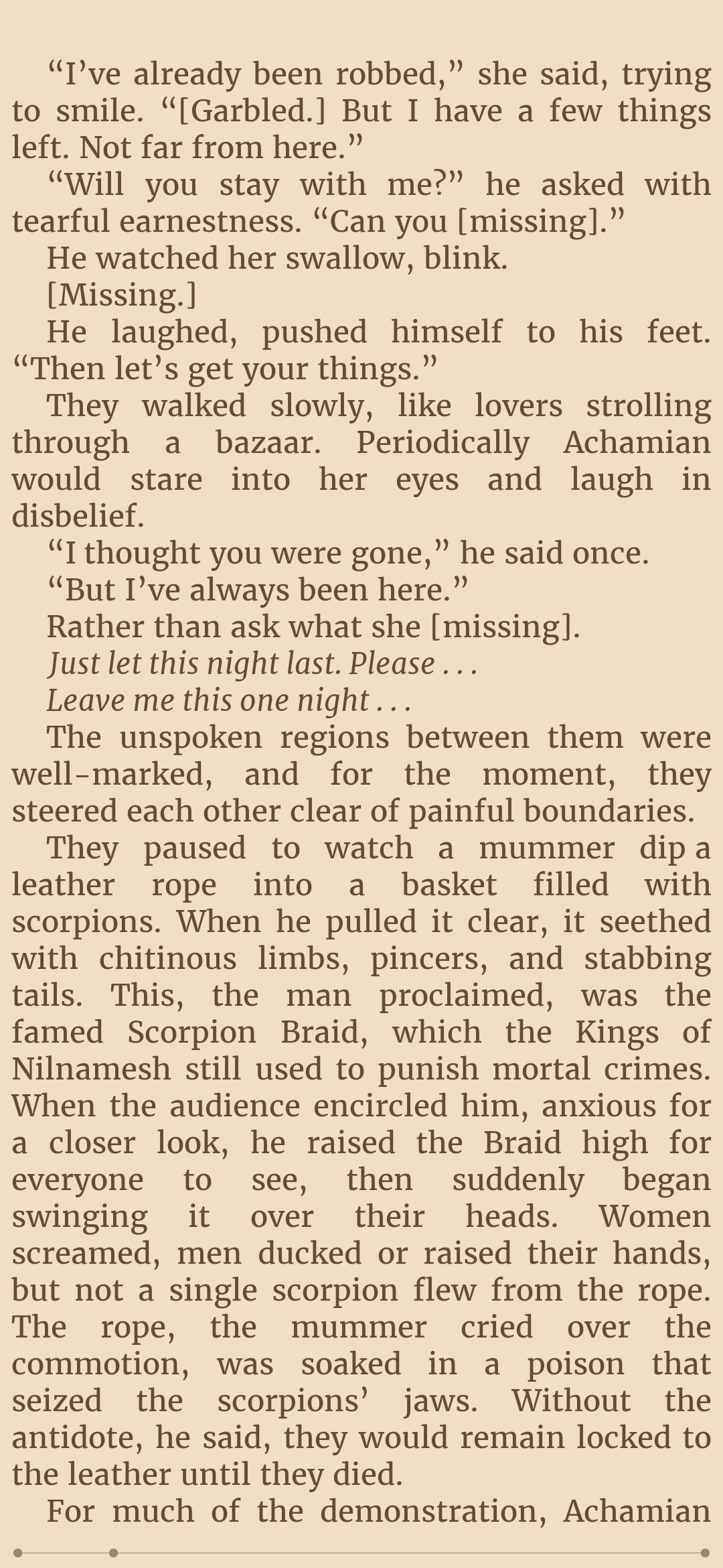 Are the [Garbled] and [Missing] part of the writing or is my epub somehow fucked?