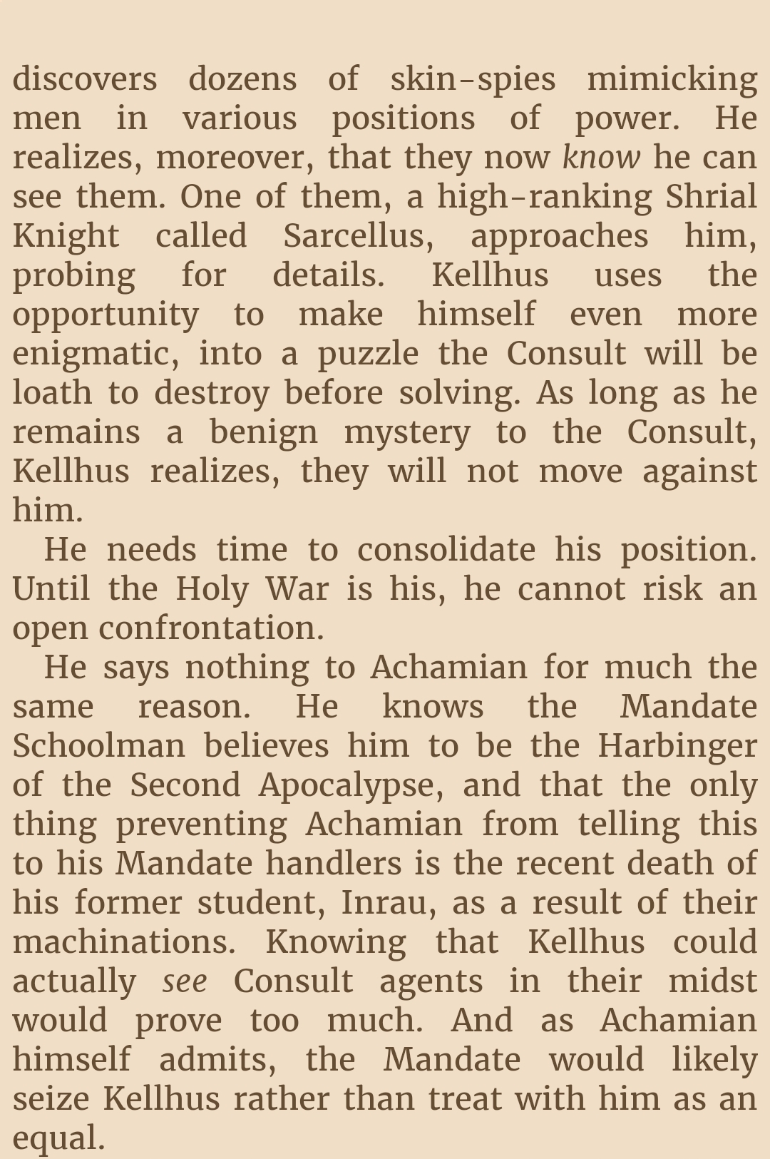 Alasdair Reynolds characters are written like this too. I guess it is a trope going back to Ender's Game and Dune, but those lean into it way less hard. The idea of the wise person having intuition, *understanding*, and virtue, versus just ultra fast processing and data collection is under utilized.