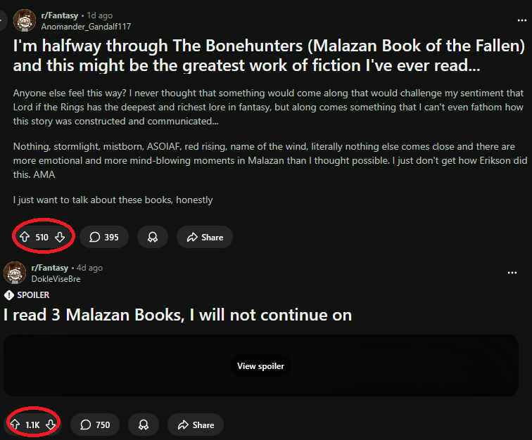 it has been for years that malazan fans become the most oppressed class in r/fantasy. There are some very dedicated haters there just like in this place