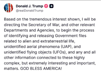 :Okinda funny he only did this because Obama made headlines when he said he believed aliens exist on a podcast recently.