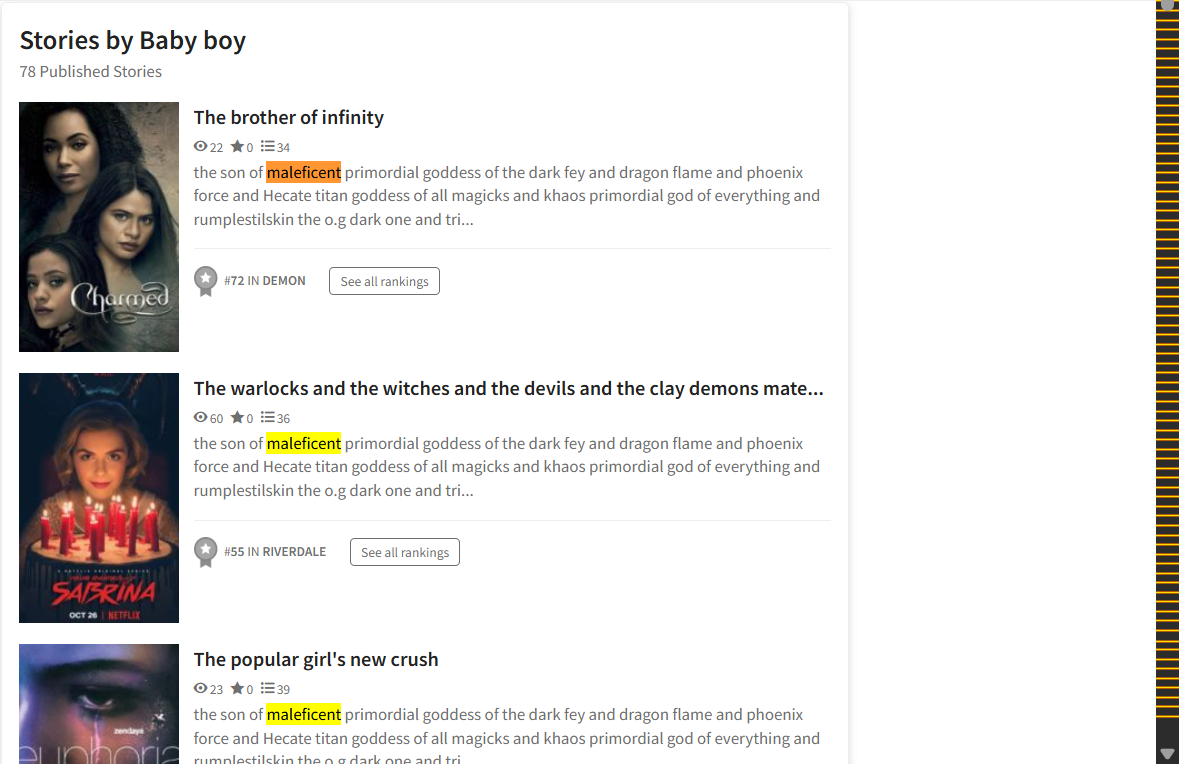 >>25100888okay. taking you at your word. so why do these fair and professional mods let the discord cabals and writer groups run fucking wild. there's a yuri group that claims yuri for their own property as a genre. if they don't approve or you're not a member they carpet bomb your rating and comments. this is but one example and its hardly the exception rather than the rule. members of cabals get instant gluts of shout outs, review 5 star swaps, comments and likes. like the coordinated launches to own RS. that shit sound fair and professional to you. the fuck.