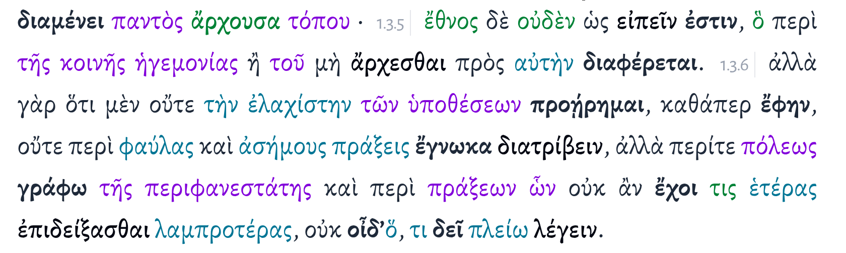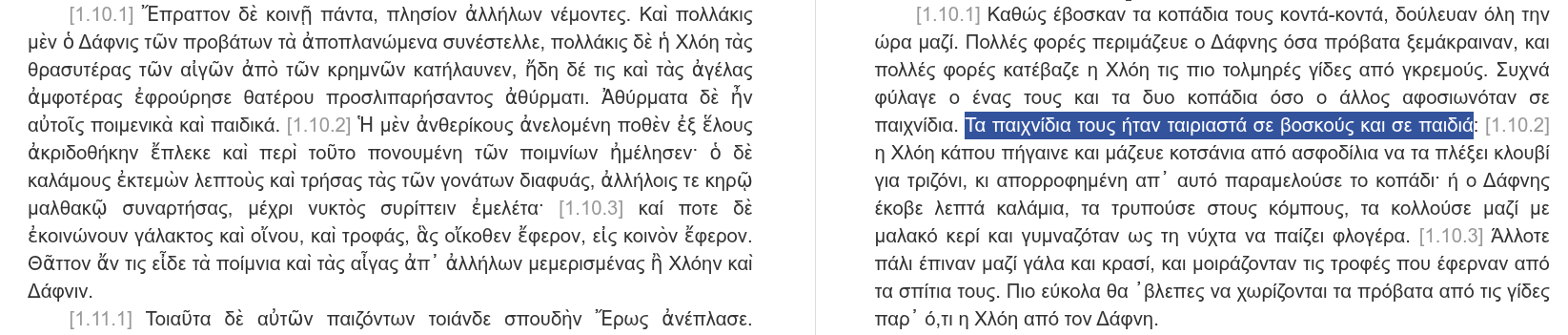 πάλιν θηρίου πέρι λόγοι τινοὶ ποιητέοι μοι ὡς τὸ πάρος περ πλὴν ἢ τὸ μῆκος διξοί, πεῖραν λάβω Ἰαστὶ τὸν ἀγῶνα πειραίνειν ὅκως ἐπίσταμαι· φιλέω 'γὼ τὸν ἐρίθακον, ὁ μὴν γὰρ φίλτατος πέλει τῶν πρὸς ἐμὲ θαμὰ ἐσφοιτέοντων ὀρνίθων ἐμοῦ σφισὶ ψῖχας παρατιθέντος παρὰ τῇ θυρίδ' ὅκως τὰ σφέτερα χρώματα κᾀόλας ἀϊκὰς ἕδωμαι ἐσορέων· ἄλλους καλοὺς καὶ εὐθρίχας σπιζίτους θηέομαι ἀπικνεομένους ἀλλὰ τὸ στῆθος αὐτοῦ οὕτω χαρίεν ὄν διὰ τὸ φλογοειδὲς ἐρύθημα νίκην παρέχει οἱ