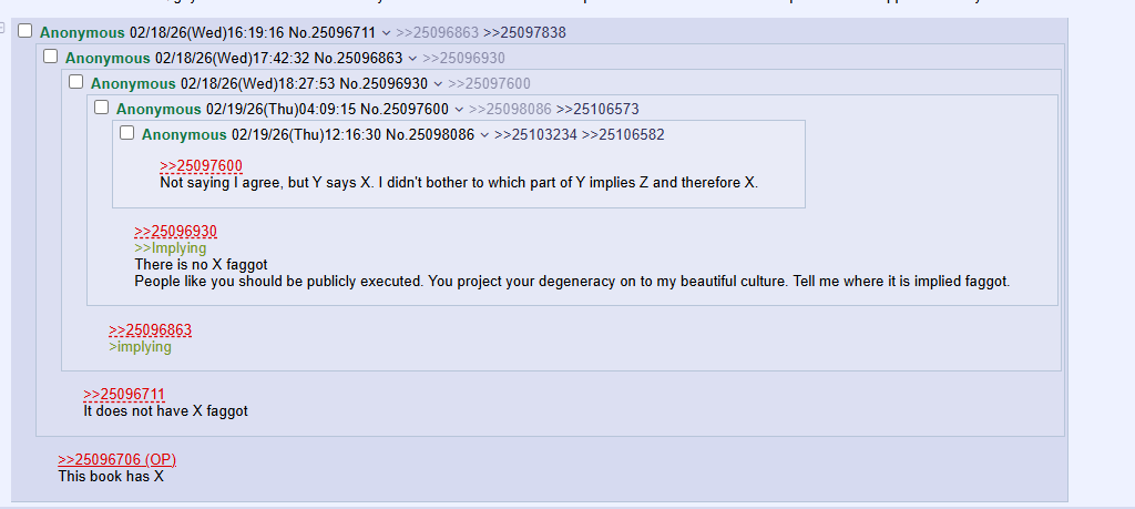 >>25115146 I'm trying to understand the belief in Jewish supremacy and you're going to show me, not mere evidence, but arguments that trump my skepticism.