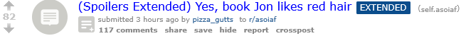 There is a House Boggs of the North, and there is a House Boggs of the Crownlands. Neither is related, we have no sigil for either, and only the Crownlands Boggs has any individual mentioned in any of the literature. Really, WTF Martin, you actually write down the same name twice and nobody working with you noticed? This isn't like the Fossaways, Farwynd, Shett, or even the Flints. Those other houses are cadet branches in the same kingdom. When you have cadet houses in different kingdoms, you run the risk of border gore that the king has to fix so both great houses are satisfied. This IS the setup for a story, but GRRM has no intention of writing a lesser house succession crisis. He really shouldn't be bothered by fanfiction when his writing begs questions so hard.>>25154305I think GRRM felt he seriously needed Stannis to murder Renly, but found no plausible means for Stannis to accomplish that. Renly is always with his entourage of the best warriors in the South, with a massive army, and Stannis does not want to be caught as a kinslayer. Magic was the only method to accomplish that. He probably already had Melisandre in mind, as a character inspired by Ayesha from Haggard's She. This plot requirement of a supernatural murder is a great opportunity to tie in the magic woman concept to a king that GRRM intended a tragic downfall.>>25152480Contrary to popular belief, really big muscle men can move fast. The issue is whether they can continue to move fast after a long time. The past 20 years of Heavyweight boxing is full of 2-meter tall men, and the average amount of punches has dropped to a fifth of what they were in the 1970s. These huge boxers get gassed during the 12-round bout. If only the first 2 rounds matter, look at Butterbean's record. Most knights can't beat the Mountain those first 6 minutes. The Mountain's reputation lasted 15 years for a reason. GoT Jaime knows he has a good chance in those 6 minutes, but definitely wins after 6 minutes.