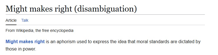 >>25166015>n-no it doesn’t mean that the dictionary is wrongLol ok nigger.https://en.wikipedia.org/wiki/Might_makes_right