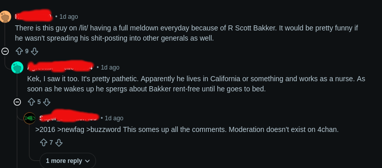 >>25171788I used to shit on people who complained about incels, because they overused the term to comical levels. But there's a very real problem with unironic, literally mentally ill people on the internet who are anti-romance, anti-relationship, anti-[opposite sex], anti-[same sex but in any way successful]. It's all fueled by resentment and when they get triggered they spew utterly vile, toxic hate into the nearest comment box.Now I give them the benefit of the doubt, because it's now not only possible, but likely that they have to deal with some sperg sperging out in their real life.>>25171891>but fucking separate serious novels, progression, cultivation from smut, "humor and flirting" and simp garbage.This is a prime example. Serious novels mustn't include flirting or romance or humor? Core aspects of the human experience? This anon shouldn't be banned from reading outright, but his opinion is worse than worthless: it's toxic, in that it's harmful to anyone who reads it and gives it any consideration at all.Go read a tech manual somewhere.>>25172095I wish it were so but I have (had) a few of these resentful idiots in my comments. I banned them. Banning them is the correct thing to do. Ten commenters sperging out and being the loudest minority in my comments when I have plenty of other readers who are silently enjoying the story is nonsense.My advice to anyone who starts getting those comments? Block them and don't look back. It's on the author to determine if there's anything worthy in critical feedback, but haters gonna hate and they get the banhammer. There is NOTHING to gain by leaving such comments visible, except to signal to other haters that they've found a place they can sperg out without getting blocked and their comments deleted instantly.