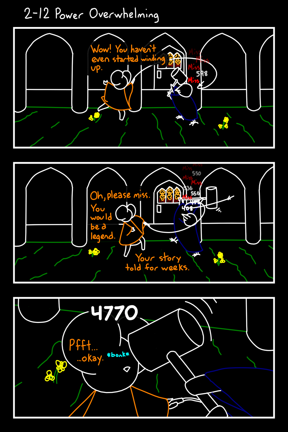 >>25168564That's the problem, I can't.I never said the webcomic was good.>statsThe comic is based in a video game with a 5 stat system. All of the substats are based on the main stats. I wrote a battle simulator in python to take 2 stat compliments and combat them.I took the output of the combat simulator, and used it for the comic's damage numbers.I update the character's stats throughout the comic.If I could draw like a manhwa artist, I'd make something entirely different.