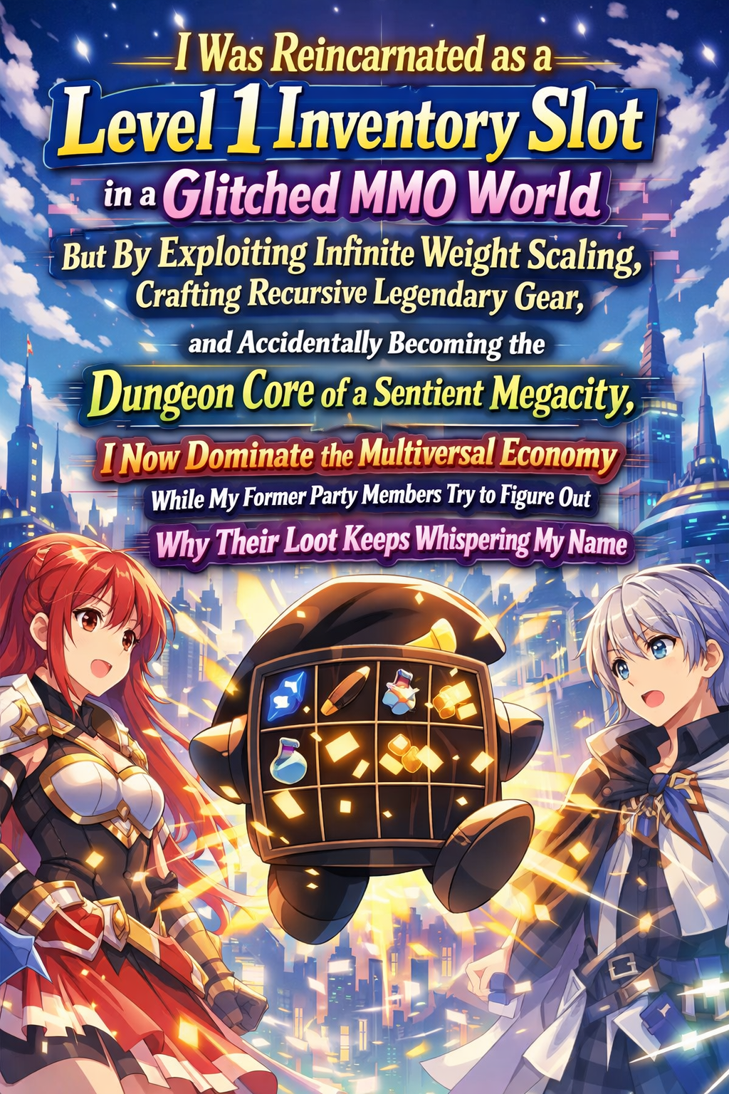 >>25171358>I Was Reincarnated as a Level 1 Inventory Slot in a Glitched MMO World, But By Exploiting Infinite Weight Scaling, Crafting Recursive Legendary Gear, and Accidentally Becoming the Dungeon Core of a Sentient Megacity, I Now Dominate the Multiversal Economy While My Former Party Members Try to Figure Out Why Their Loot Keeps Whispering My Name