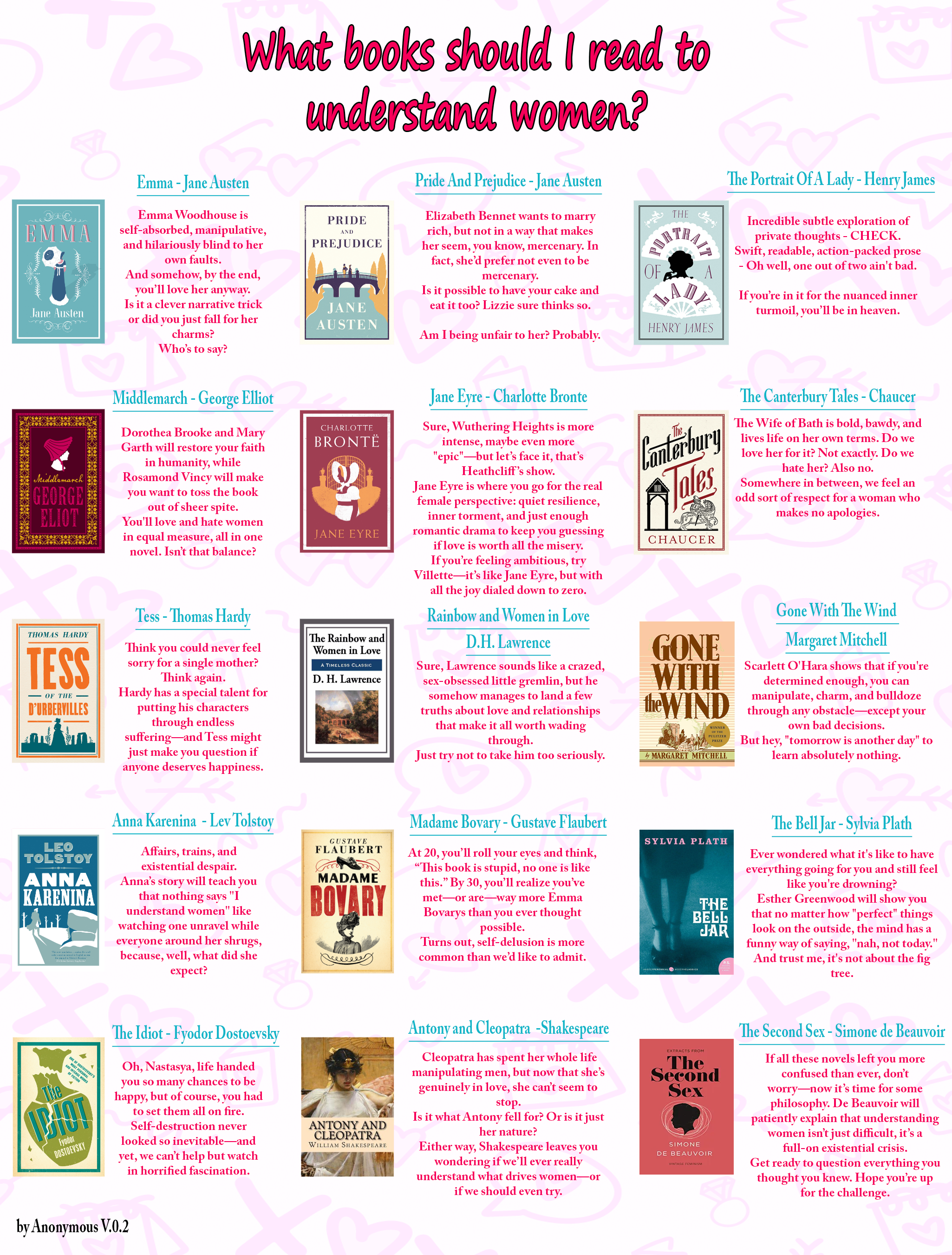>>25162974Whenever you read about women, you're reminded of the reasons that everyone prefers to read about men. Why are there no books about women doing things that are actually interesting to read about? Wuthering Heights, Euripides and Shakespeare. That's it.