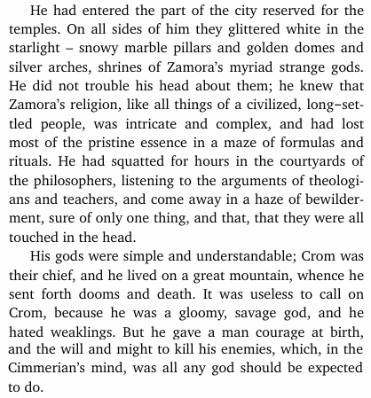 I didn’t really care for that one but I did like this little bit of barbarian theology in it.
