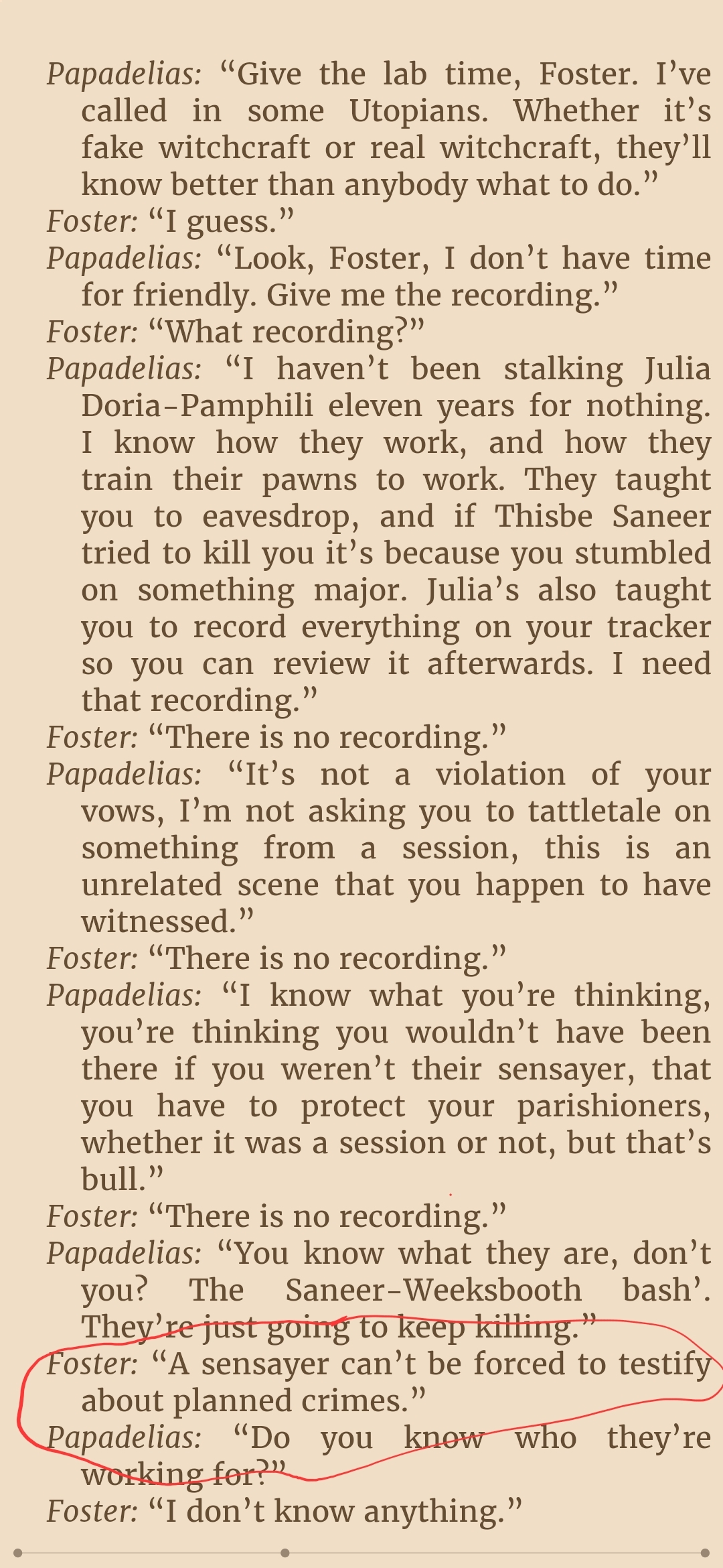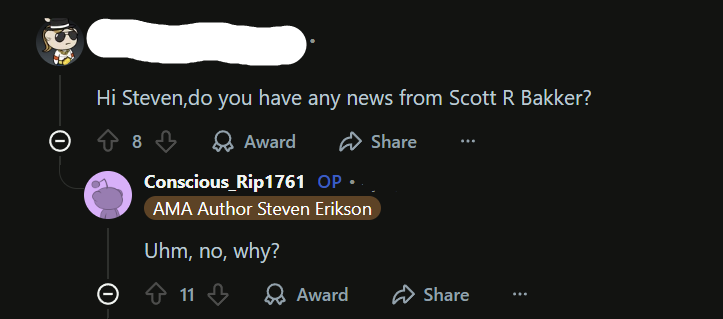 >>25169149Agree, not a fan of author's "previously on.." thing. It's like he's saying: "Gotta make sure reader got every single plot detail right as I intended". Who cares? It's also quite ironic, since he goes on to recap the events from previous book again in form of character conversations/introspections.