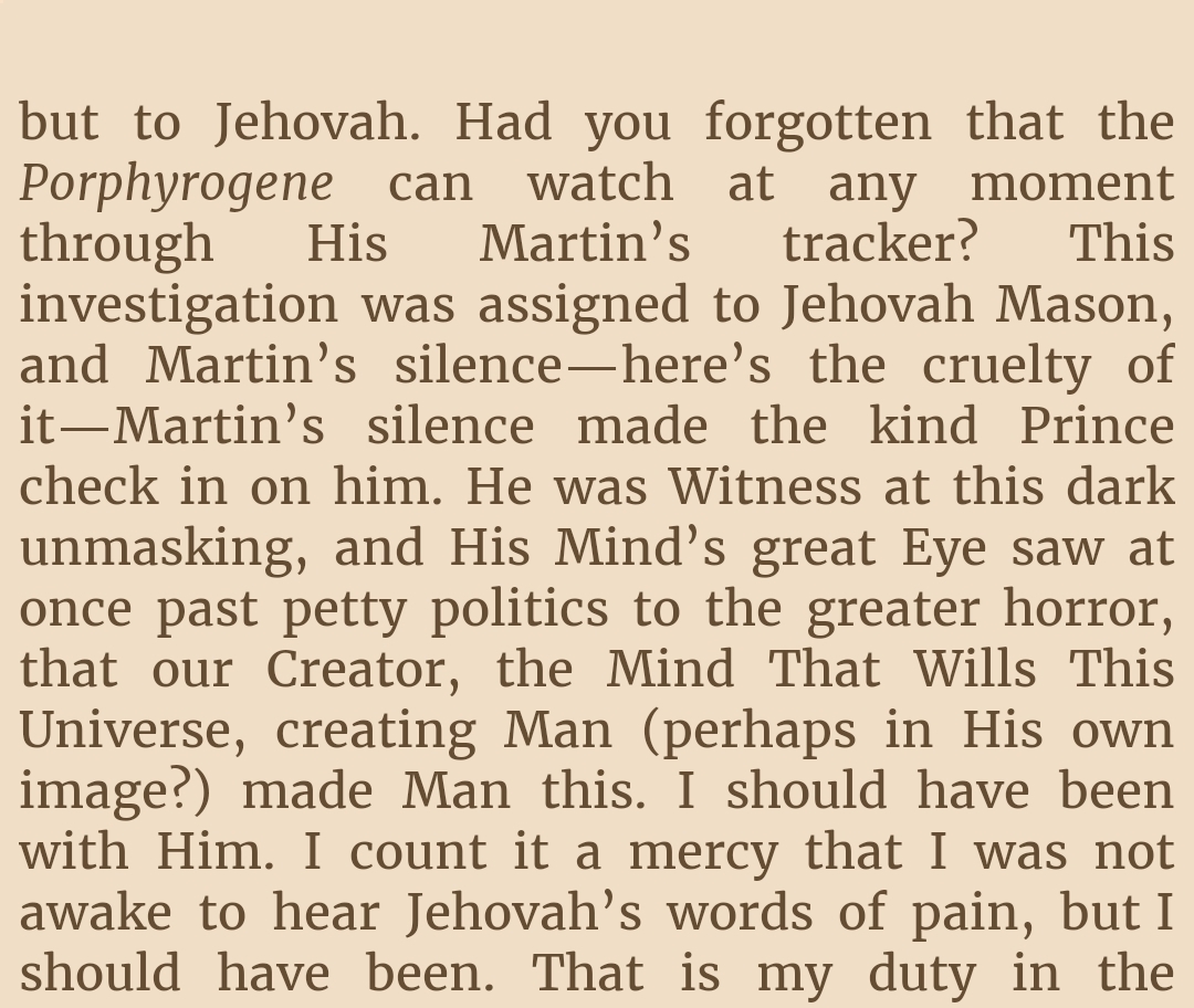 I wanted something light and quick, so I read Tress and Emerald Sea, then Yumi and the Nightmare painter. I liked Tress a lot. Seemed like something that really suits Sanderson's style, and coming off wind and truth was a big improvement. The shorter book structure really fixes his problem of nothing happening before the ending of the book because there is much less content that isn't the ending. I do think it needed like one other "thing" to happen, but it's short enough that I didn't get sick of it. Normally I wouldn't like such a whimsical narrator, but I didn't mind as much because its an established character who I already knew. Yumi, I did not particularly enjoy. It's kind of cringe, kind of boring, and annoyingly horny (half the book is just them ogling each other while bathing). It's funny because I was reading it I thought that the whole setup reminded me a lot of Zanarkand which is funny because in the author notes he explicitly says FFX was the biggest inspiration. Sanderson always has a problem with his books feeling YA, but this one I really felt like I was reading something I wasn't supposed to.