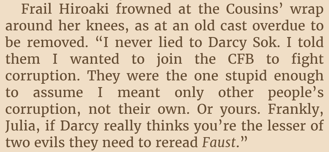 >>25169149Agree, not a fan of author's "previously on.." thing. It's like he's saying: "Gotta make sure reader got every single plot detail right as I intended". Who cares? It's also quite ironic, since he goes on to recap the events from previous book again in form of character conversations/introspections.