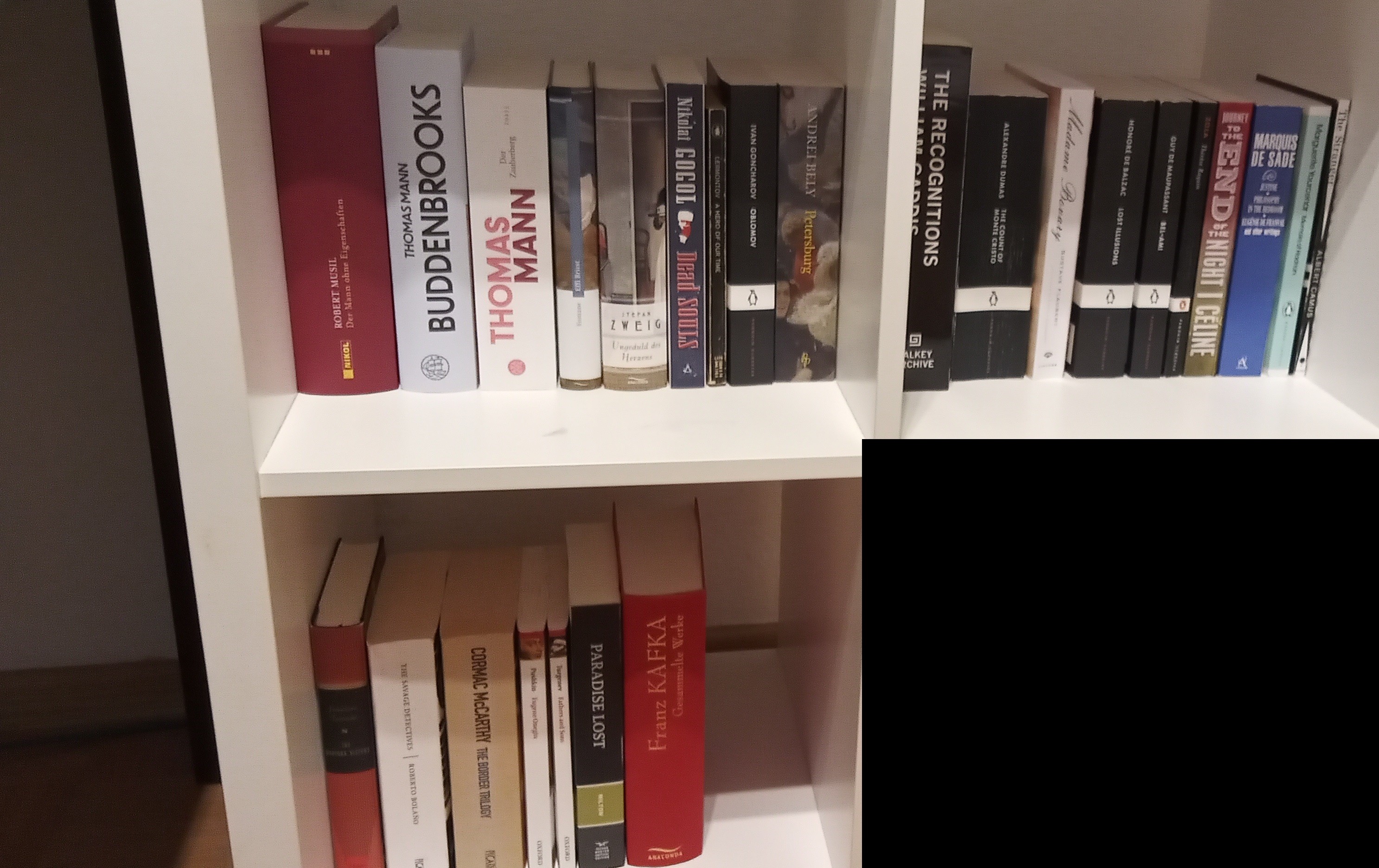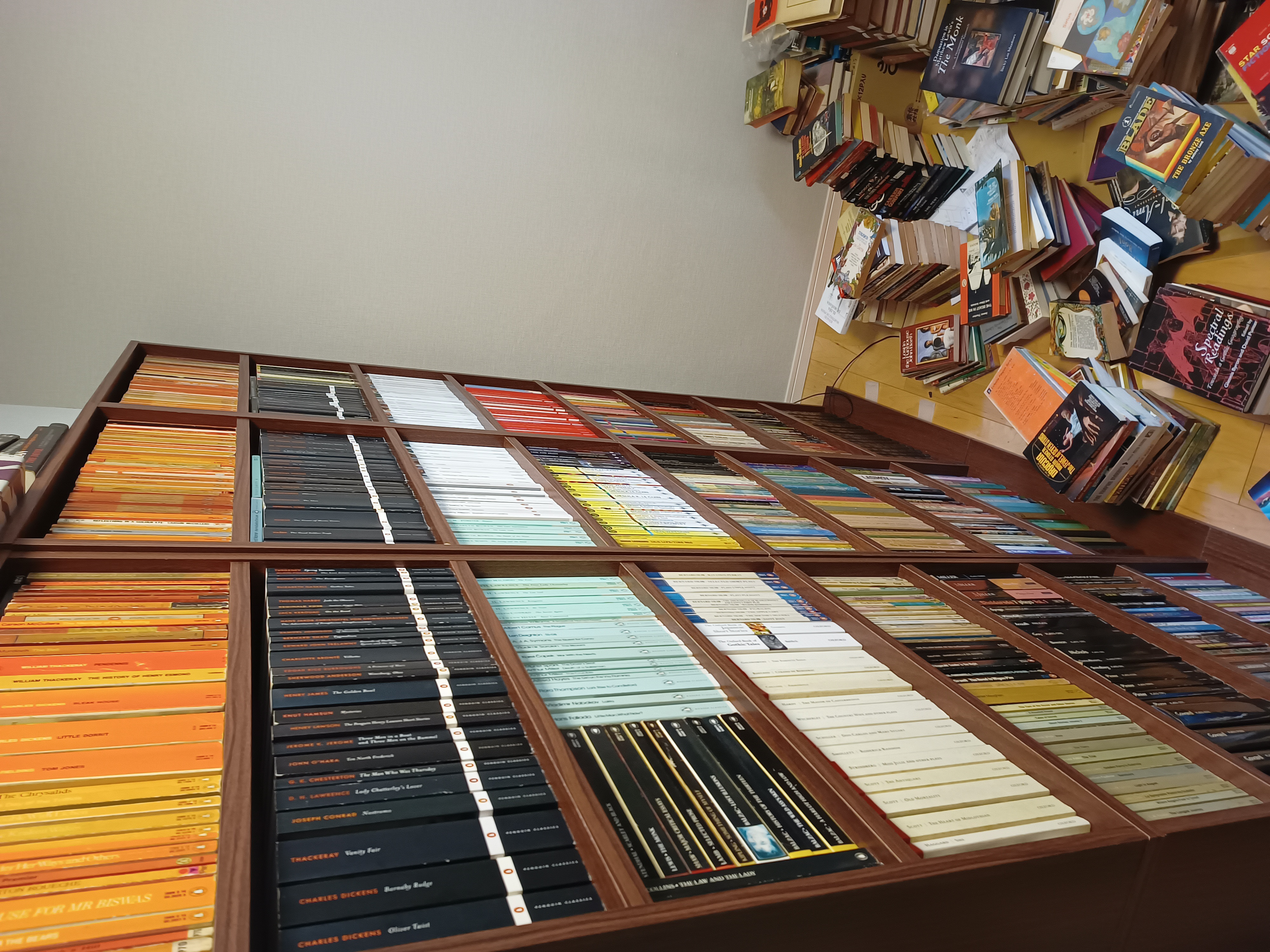 >>25169587I've been building and organizing my new shelves since yesterday afternoon. I finished, but now I have to buy some rods to prevent them from falling on me in case of earthquake.I mostly put classics, theater, children's books and science fiction in them. I'll add books on gothic on top of the shelves.