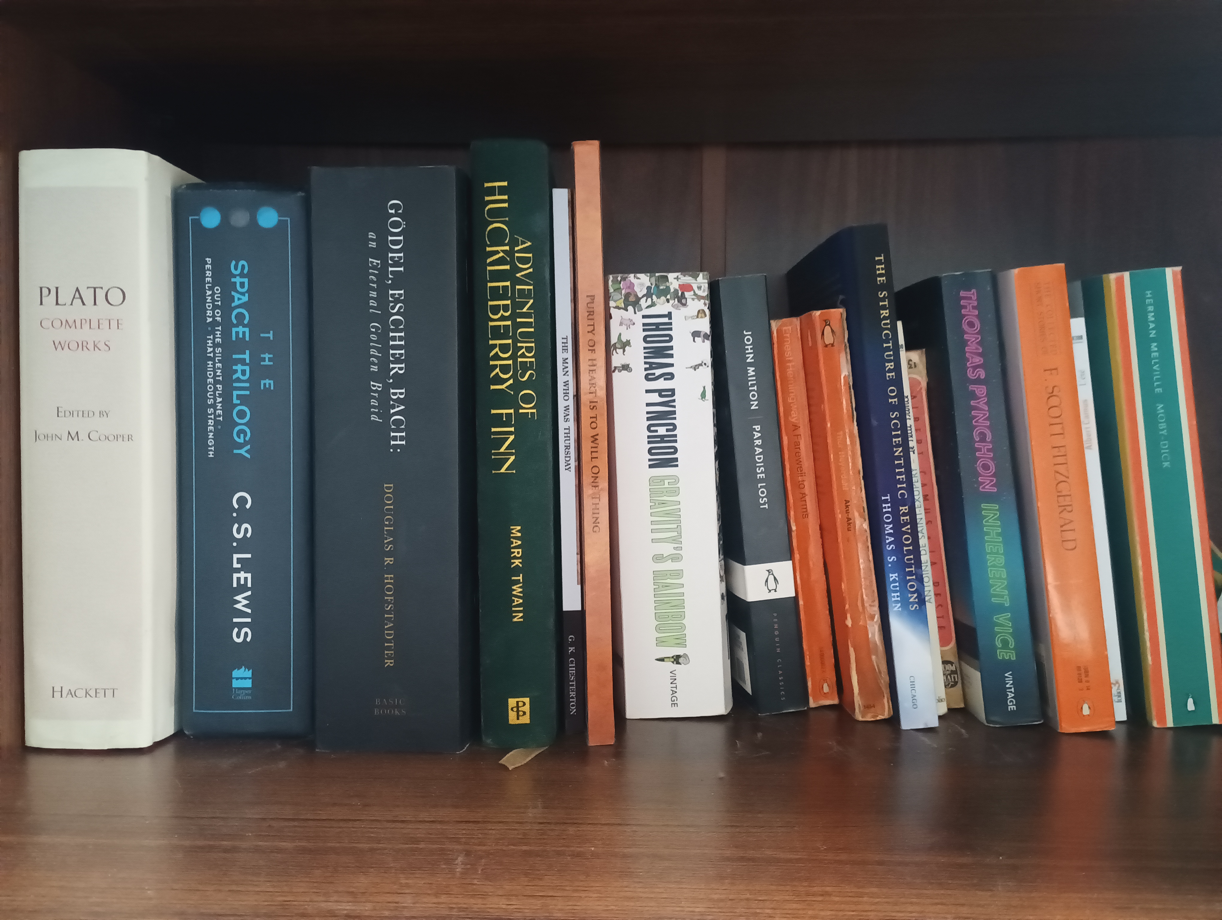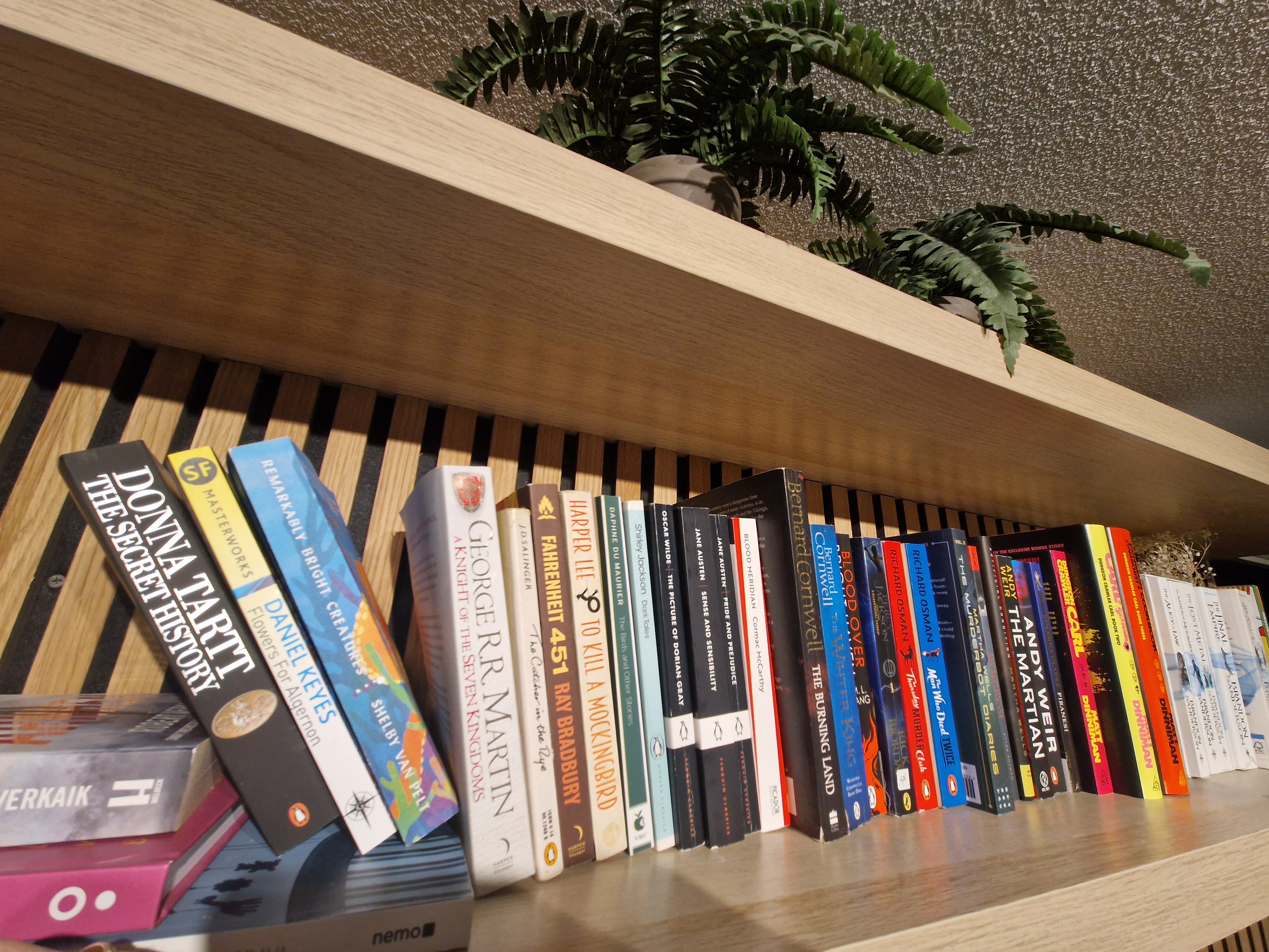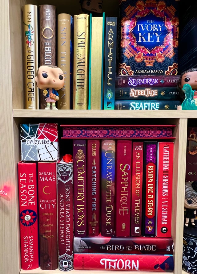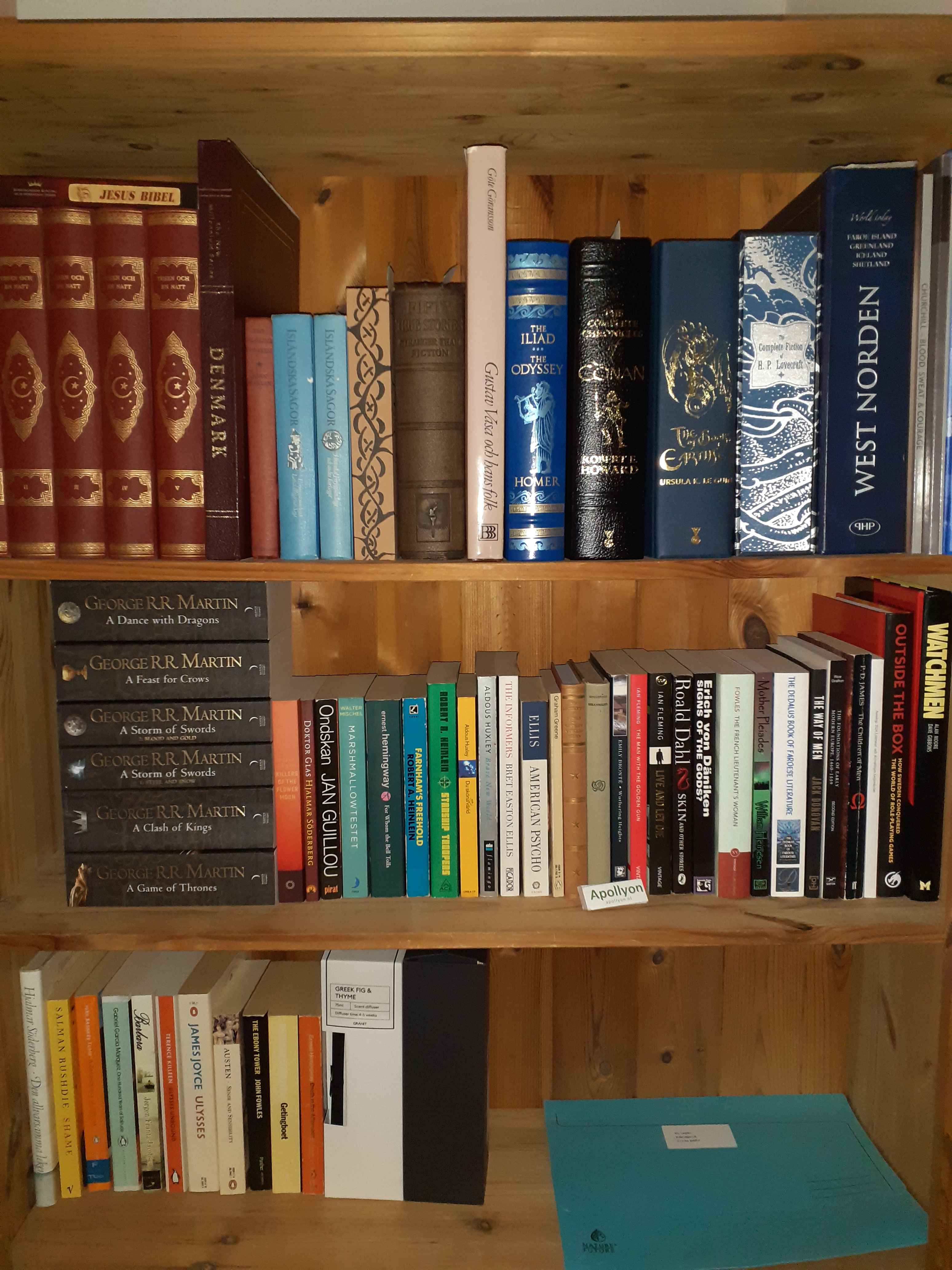 I would post a pic but my bookshelf only takes up half of one shelf. Most of the books I have read/ am reading are borrowed from my university library.
