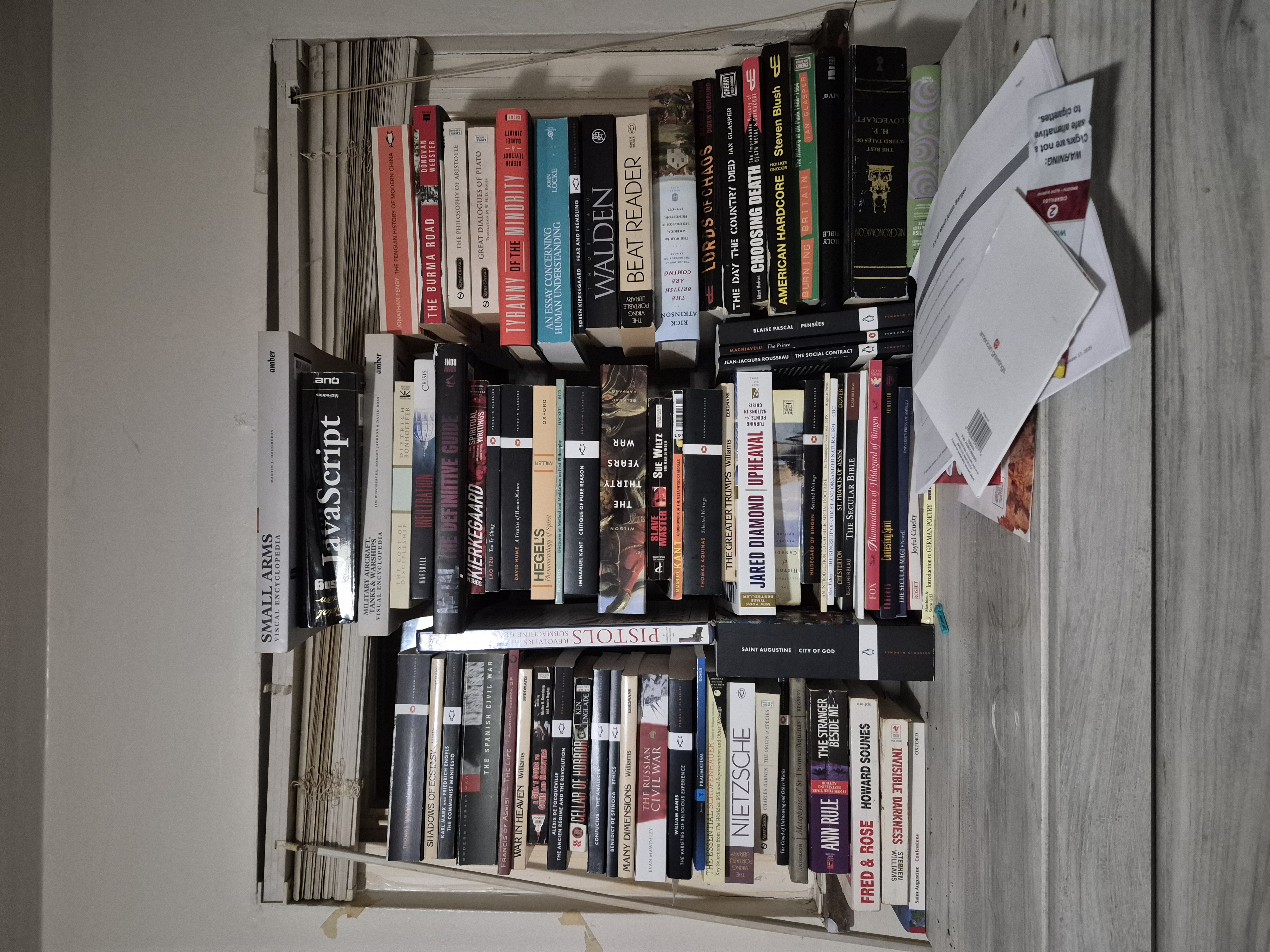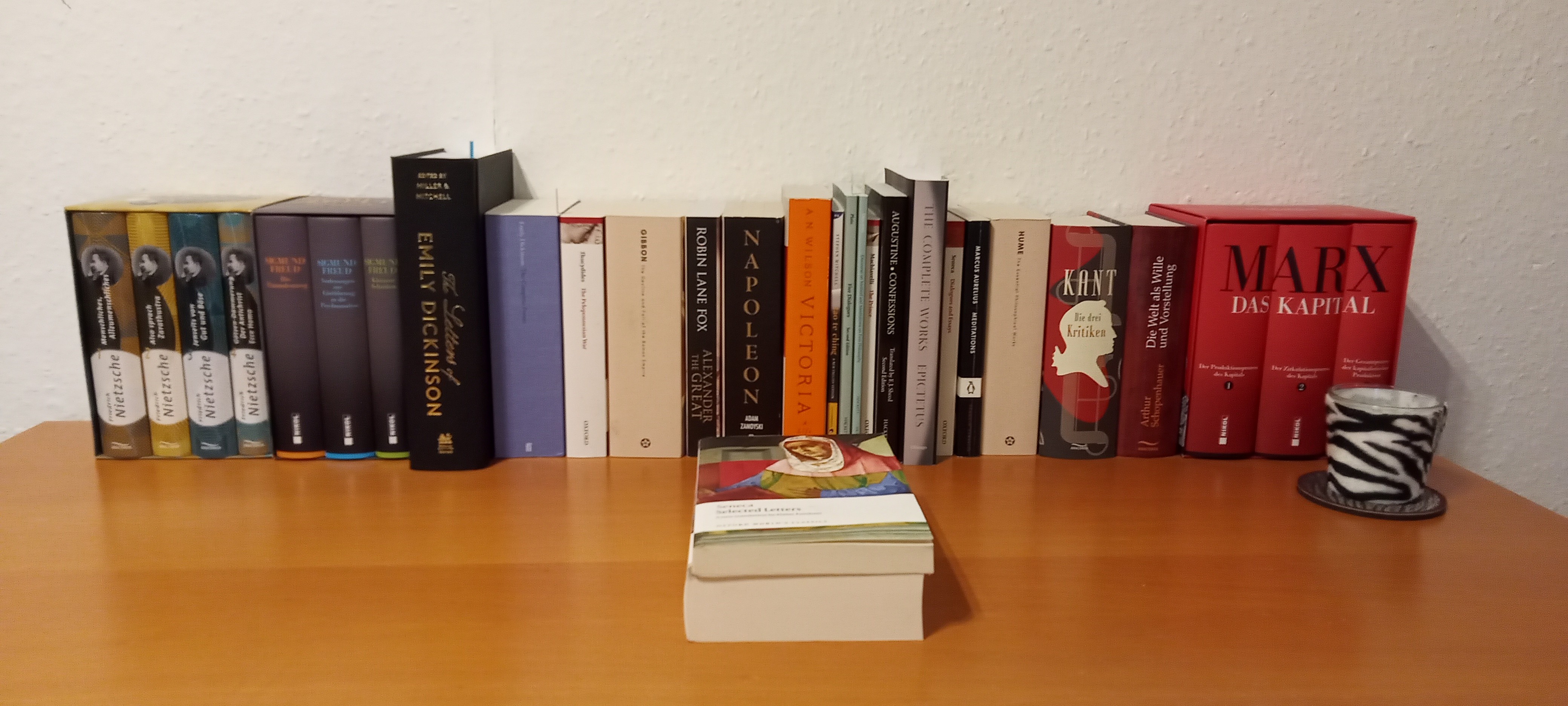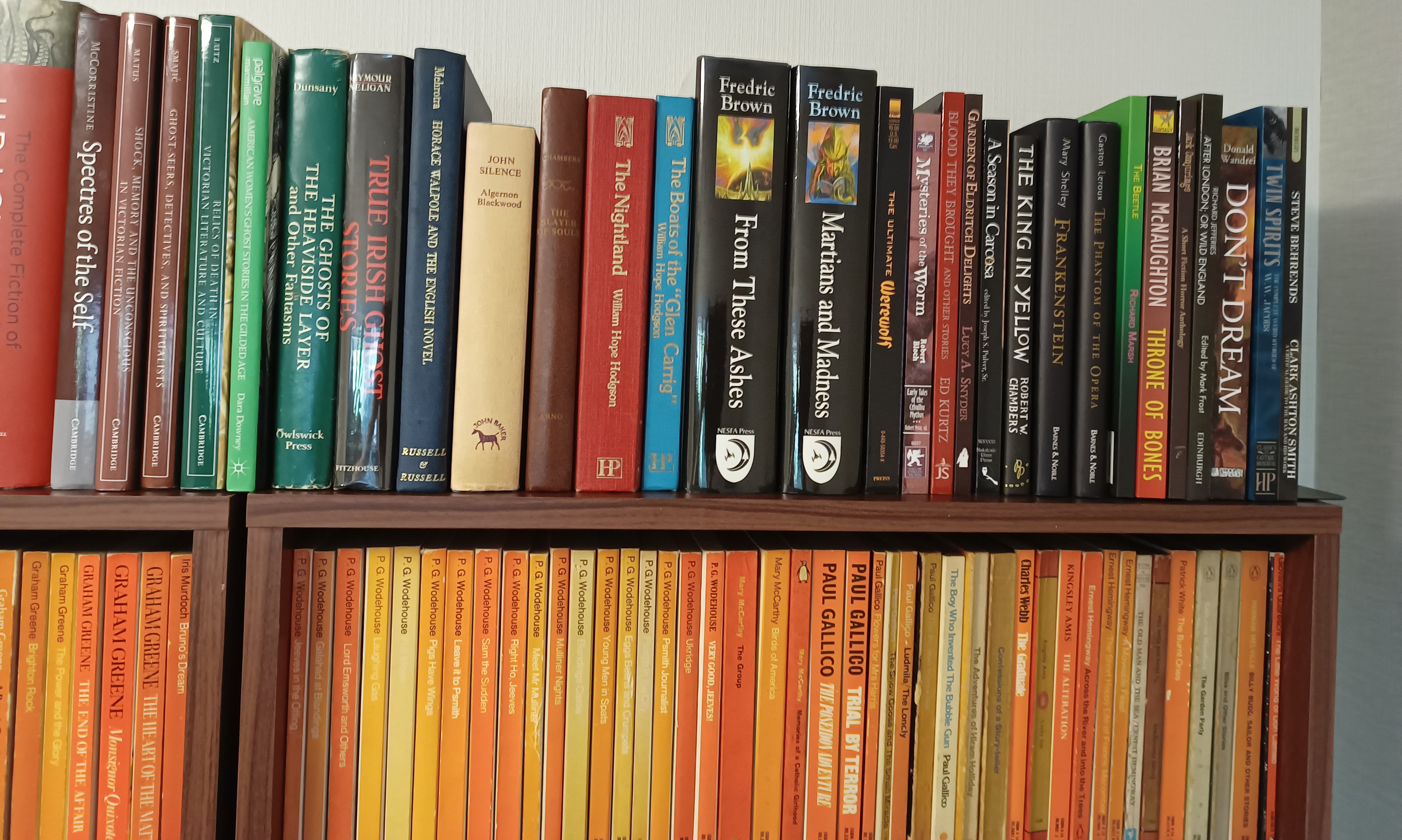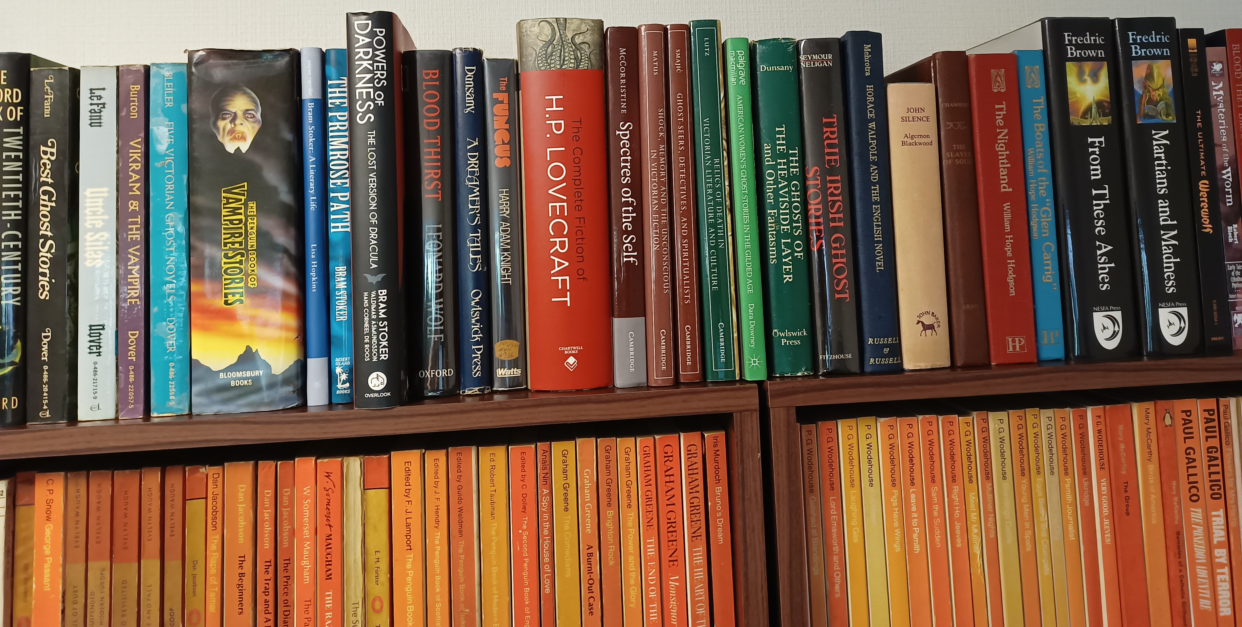 I would post a pic but my bookshelf only takes up half of one shelf. Most of the books I have read/ am reading are borrowed from my university library.