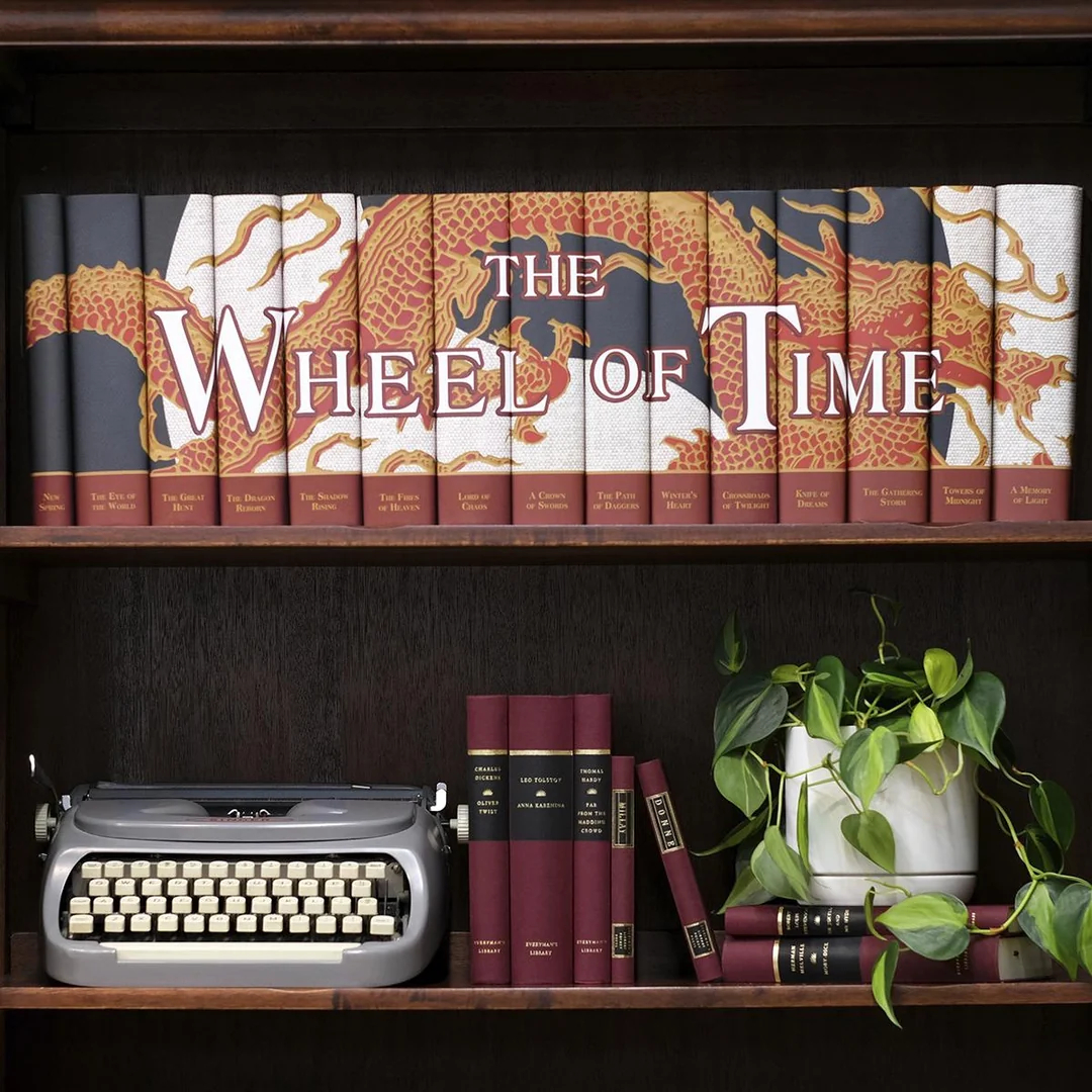 The advertisers / psychological mafia have sent me a picture of a shelf based on their highly accurate profile of my taste in literature using only books I have started but never finished. I never even read the Wheel of Time once, nor do I plan to invest $999.99 on it when I could simply invest about $420 on the much better Edgar Rice Burroughs Library Tarzan series instread. But they know I'm liable to drop a few thousand dollars on a book set and then destroy it by soaking in liquids or tearing it up to make bedding for the cats. The books on my shelf are The Wheel of Time decapentology, Charles Dickens' Oliver Twist, Leo Tolstoi's Anna Karenina, Thomas Hardy's Far From The Madding Crown, the poetry of Edna St. Vincent Millay, the poetry of John Donne, Robert Louis Stevenson's Dr. Jekyll and Mr. Hyde, and Herman Melville's Moby Dick, as well as my indoor climbing vine, and my vintage typewriter. The number of books/objects on the shelf are 24, which correspond to every hour of the day. There are also 48 keys on the typewriter, and 24 leaves on the plant.