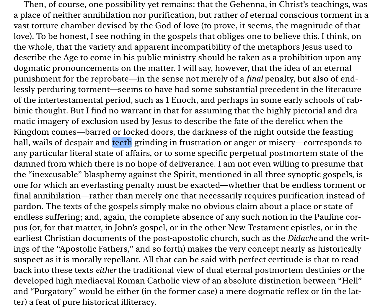 >>25179484This dude is definitely Orthodox, but yes.What does Hart make of verses like picrel?Seems to me that universalism, cessationalism, etc. all stems from the disbelief of God being capable of doing something "bad". It's always man projecting his morals onto God, or viewing Scripture through the lenses of human concepts of morality.