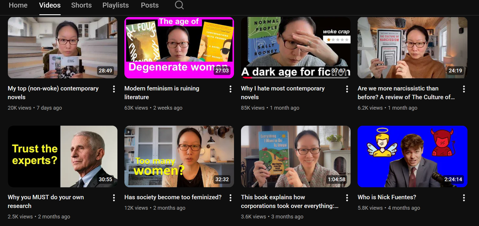 10 mins in, mostly agree with her. It's a point for a different video, maybe, but it bears saying that whatever ideology an author has, people just can't write nowadays, which is the deeper problem. They're discouraged from trying to learn how in the creative writing programs they all go to. This suggests this issue is with the academic, educational, and publishing institutions, which will still be here once the cultural tides change