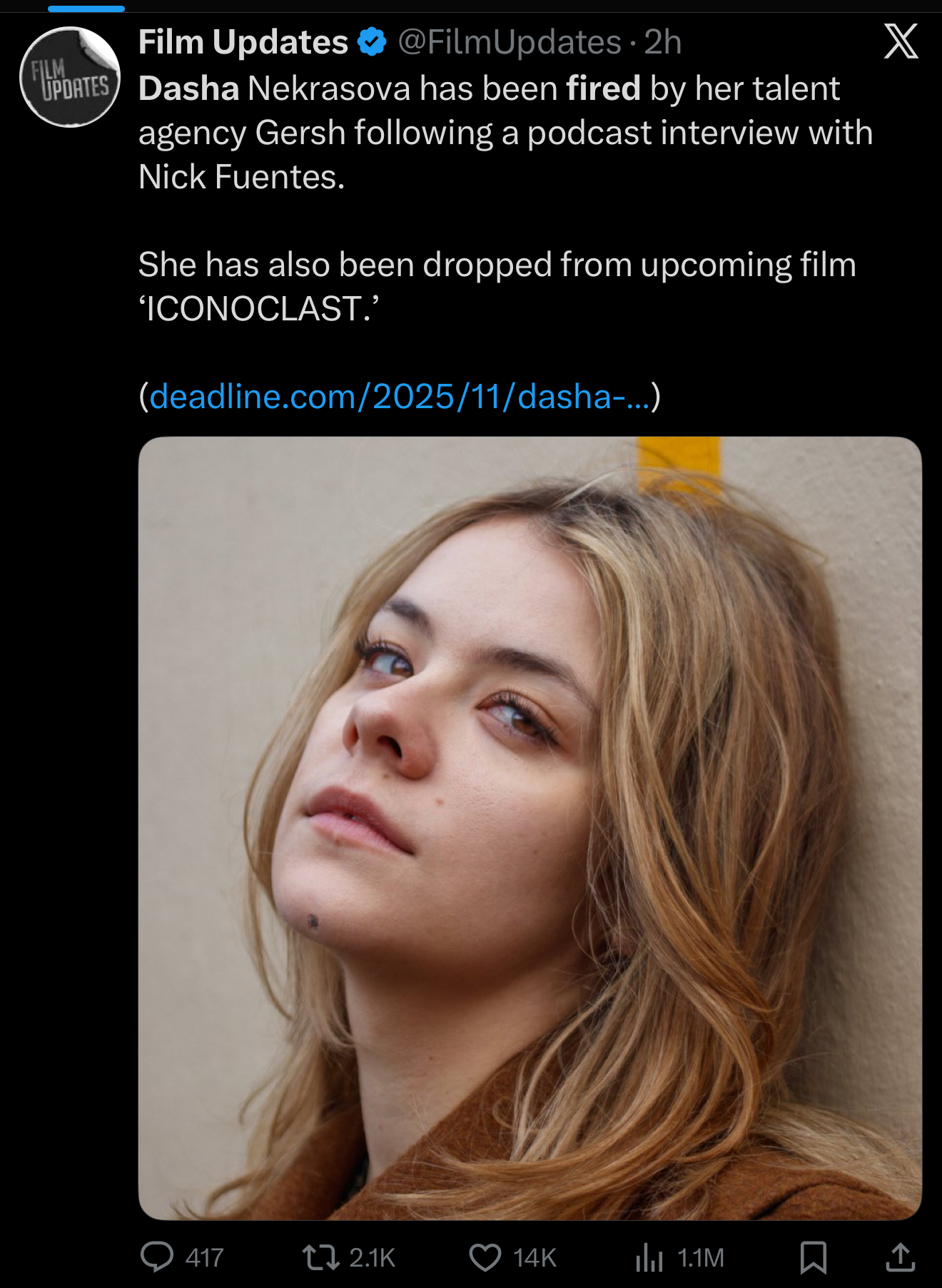 >>25193558https://en.wikipedia.org/wiki/Dasha_Nekrasova