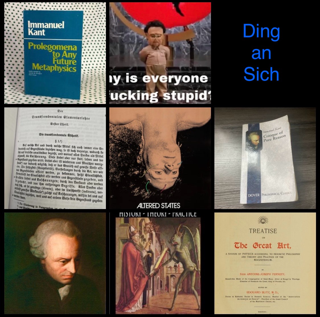 >>25194011I'm assuming you're reading the critique of pure reason for a few months now. As you read the book you probably write down quotations and paraphrase them in your own words. After you have managed to read and somewhat understand--probably-- what you have read for the past month or weeks, you start a "Kant General" thread where you write the conclusions you have drawn of the Kantian doctrine from the chapters and book parts you have read up to the time of posting. Anyway, I have read about 300 pages of the critique of pure reason and some of Jung's magnum opus about symbolism. I'm reading some occultism analyses where the authors try to explain the phenomena from the suflet-- anima or psykhe-- pov (e.g. positive mana, negative mana, taboo). Why, OP, don't you post the thread in /x/ ?