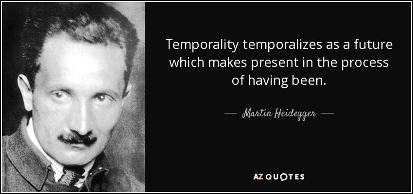 >The Temporal instantiates as a futurity which avails itself presently in the accession of having arrived.