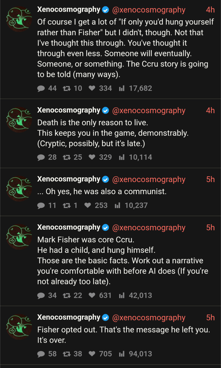 I repeat, Nick Land is crashing outHe's bitter about people caring more about Mark Fisher than him and says the CCRU story will be told