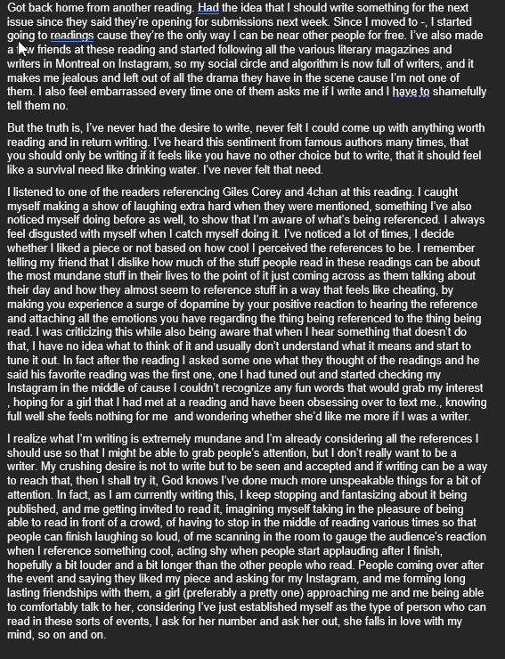Finished writing something for the first time. I know it's pretty shit and needs to be edited heavily to be even readable. Still would appreciate if you guys told me if I should submit it to a small literary journal or just give up on it,