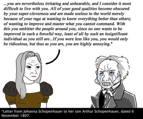 >>25215640I feel like this kind of response to Arthur Schopenhauer is only convincing if you quietly redefine all the terms he's using. You say his ideas are self-defeating because they assume "lack", but that's not actually his starting point. The whole point of the "will" is that it's not derived from a conceptual lack you can just reject. It's something you observe directly in experience; constant striving, dissatisfaction, tension, boredom, then back again. Calling yourself "complete" doesn't make that pattern disappear. You're just renaming it.>As soon as you accept that you are whole, desire no longer makes senseOK, but desire obviously still happens. You still want things, avoid things, feel relief, feel frustration. So either you redefine desire out of existence, which is just wordplay, or you admit the phenomenon is still there, in which case Schopenhauer's description still applies.The flower/tree comparison also doesn't really work. A plant doesn't experience itself as complete or incomplete, and more importantly, it still expresses will in his sense growth, reaching, reacting, competing. So if anything, that example supports him.>And what can you say is incomplete in the world? NothingThis only works if you define "complete" as "whatever exists". But then the word becomes empty. By that logic, suffering is also "complete", contradiction is "complete", frustration is "complete". You haven't solved anything, you've just made everything trivially true.>There is no transcending the worldFine, but Schopenhauer isn't talking about leaving the world in some literal sense, he's talking about changing your relation to the will. Whether you agree with that or not, it's a different claim than the one you're arguing against.