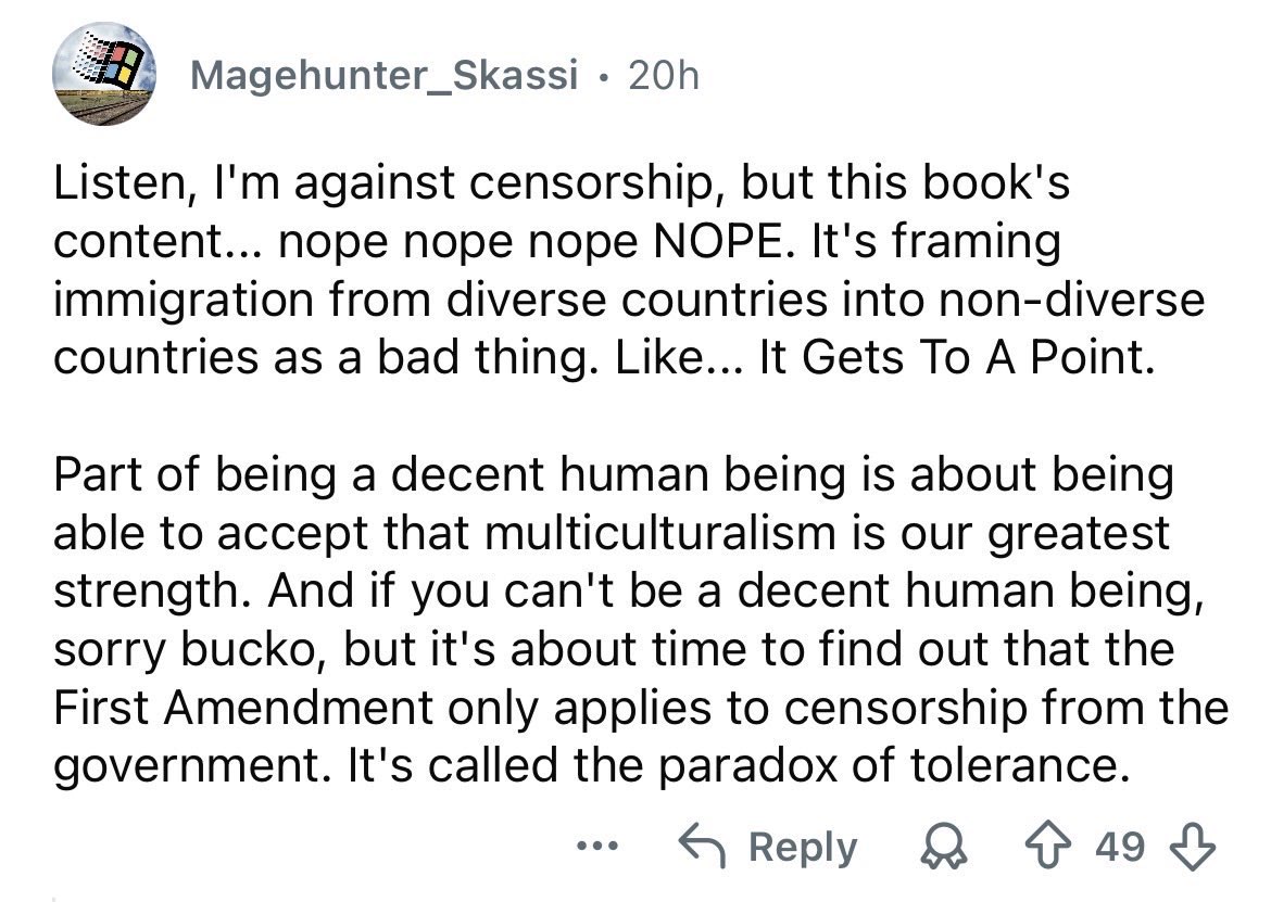 >commies come to /lit/ to troll justifying banning books they don't like