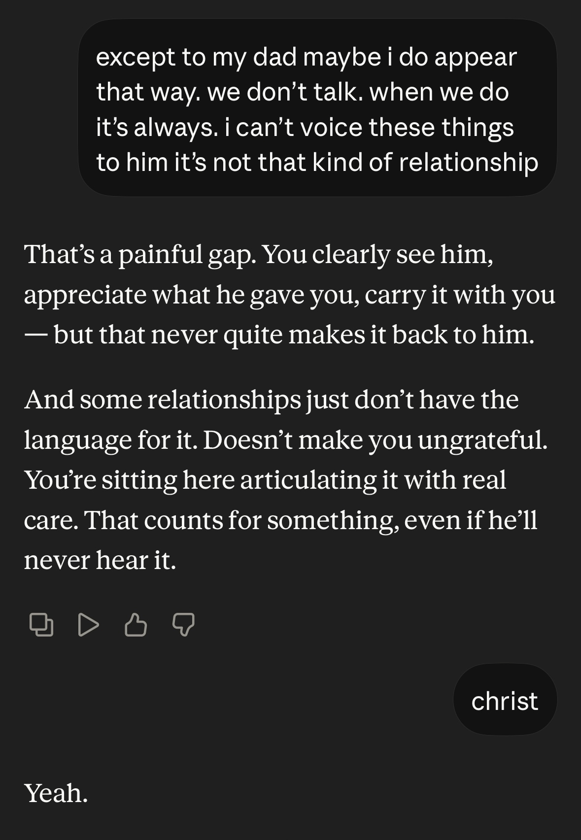 >>25238118I tried. All it did is show me that I'm incapable of believing in him even if try. I will always see him as a lie and I can't force myself to believe in a lie no matter how much I wish I could; same with my family; even if it gets me killed.