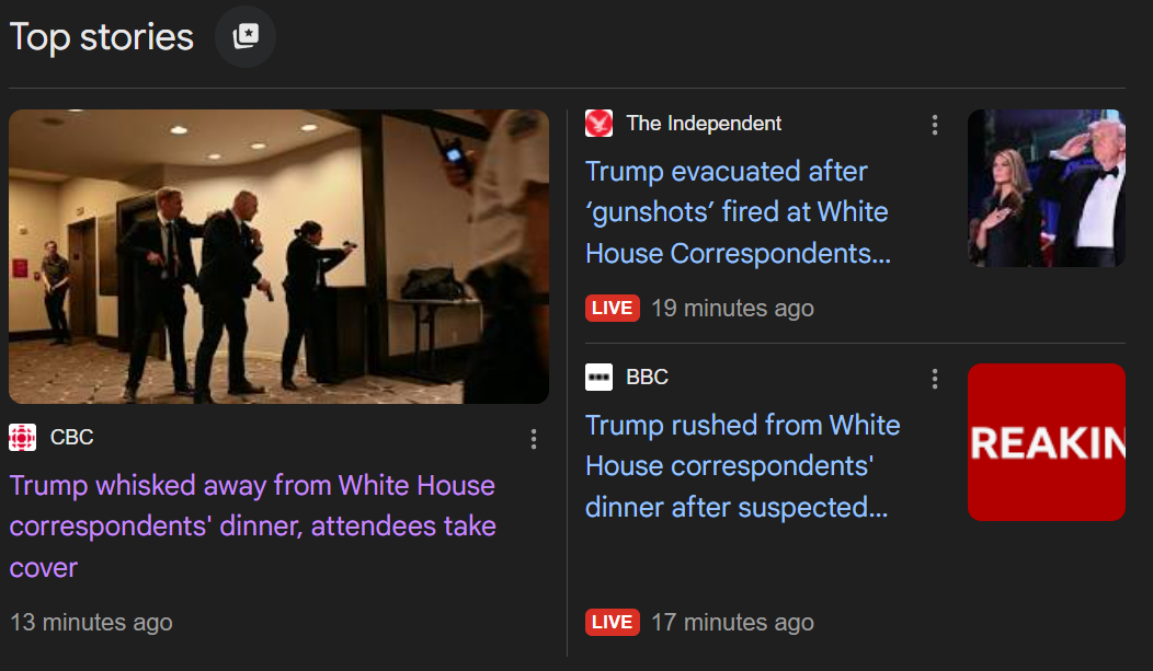>>25235160dude u can scroll back the youtube livestream, he was never in danger. u can hear the secret service blaze the gunman before they clear the room.