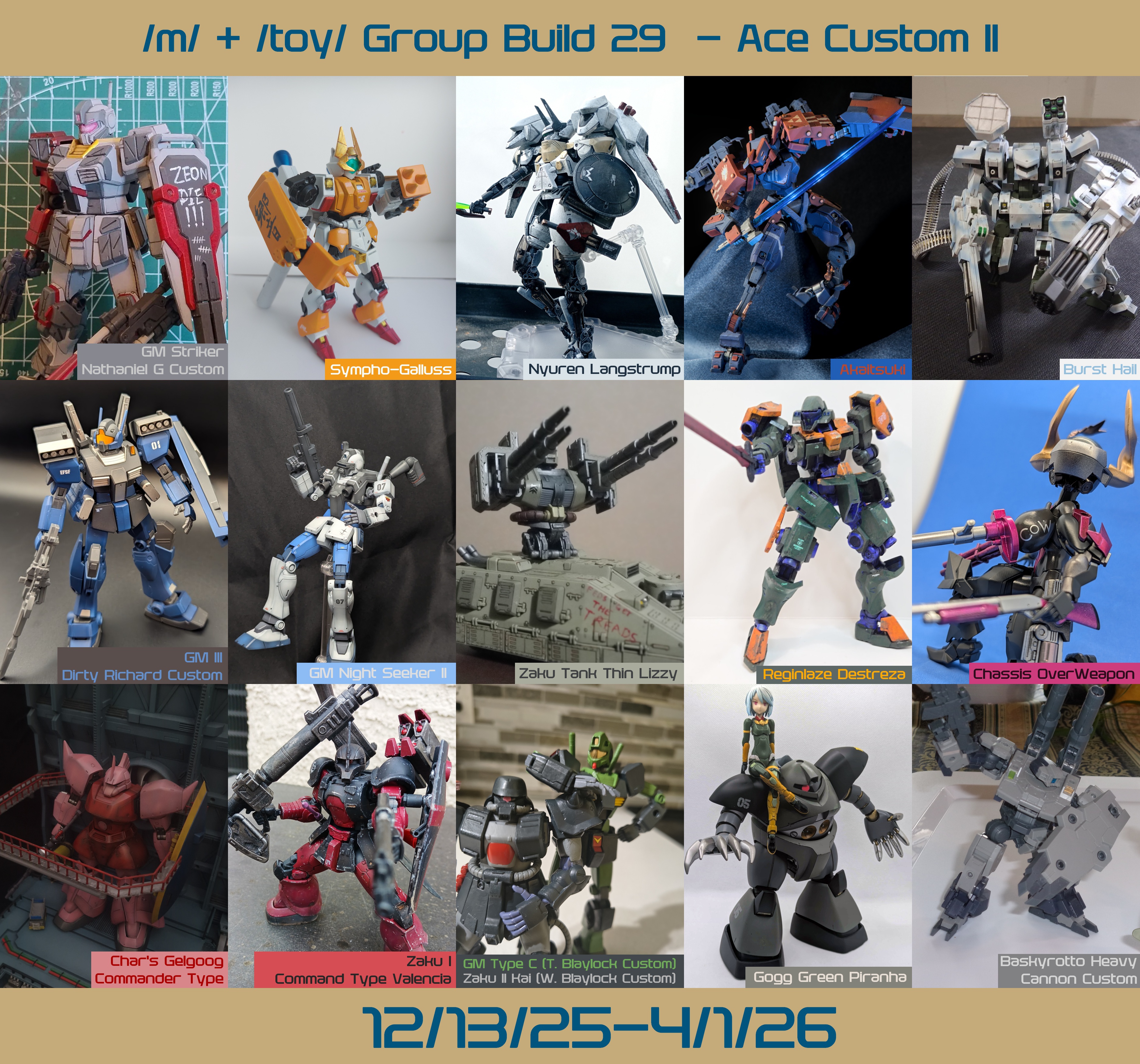 >>23807273Is "Transforming" a theme that's been done before? Take a non-transforming kit, and turn it into a build that is able to transform into some other mode. Be it a waverider or mobile armor, multiple part general-purpose transformations like ZZ or Victory, a land vehicle like Skells, a seafaring vessel, a mech that hunkers down into a large artillery platform, maybe even one that breaks into weapons for other mechs to use.I think it'd be fun to see anons bullshit alternate modes out of kits that weren't made to transform