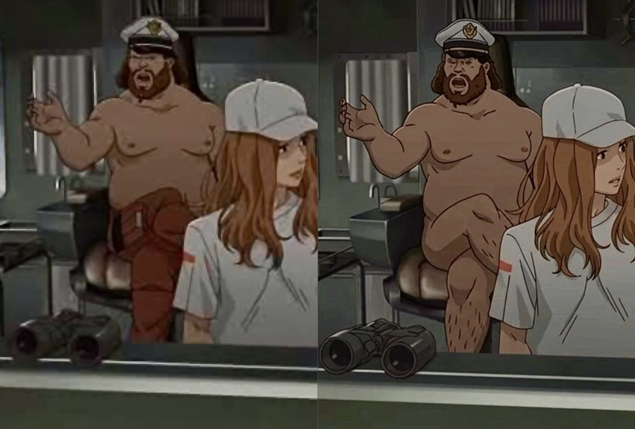 >https://en.mantan-web.jp/e_article/20260404dog00m200013000a.html>Ono revealed a behind-the-scenes story that the captain was originally completely naked, not half-naked, in the storyboards.