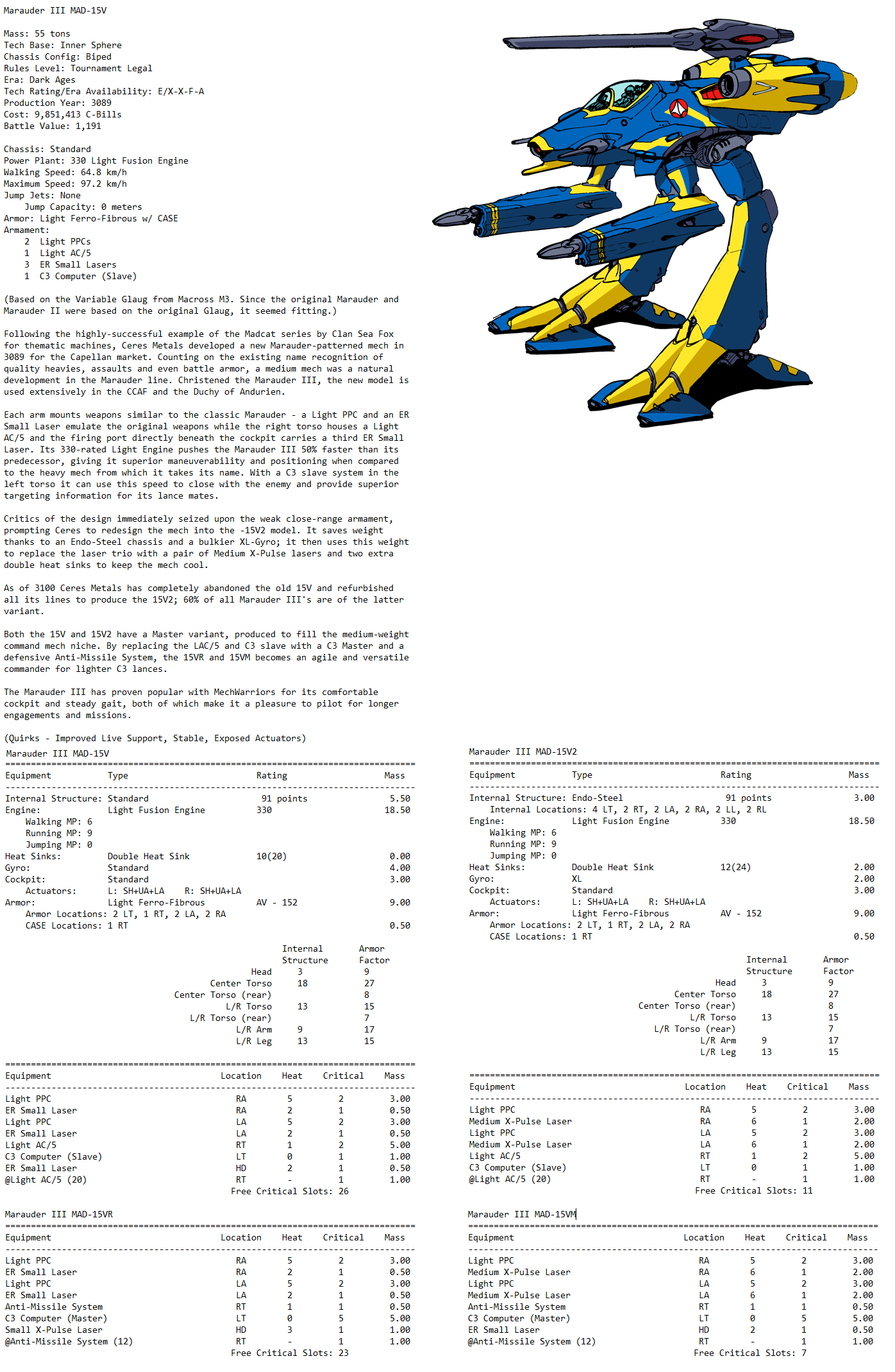 >>23699994I wrote up a Marauder III a while ago. /tg/ didn't much like it (my fluff sucks) but I maintain the "what if Marauder but smaller" does make for a fun if mediocre little mech.