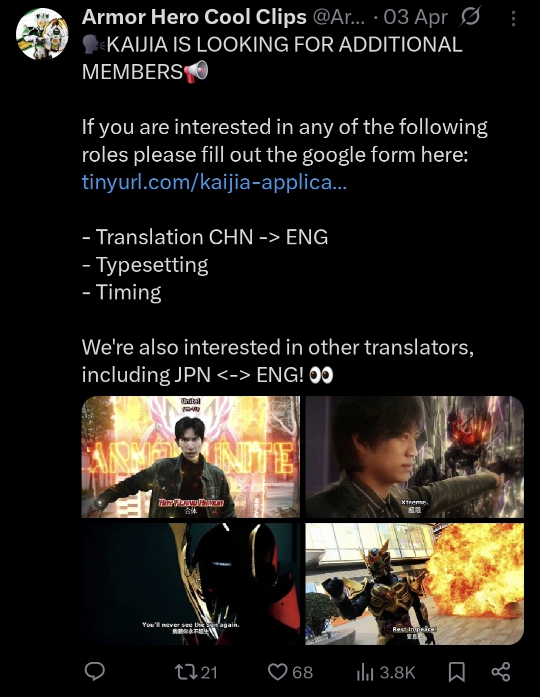 >https://x.com/i/status/2040105445121982672Alright anons, who wants to help them finish Armor Hero Star Ray?