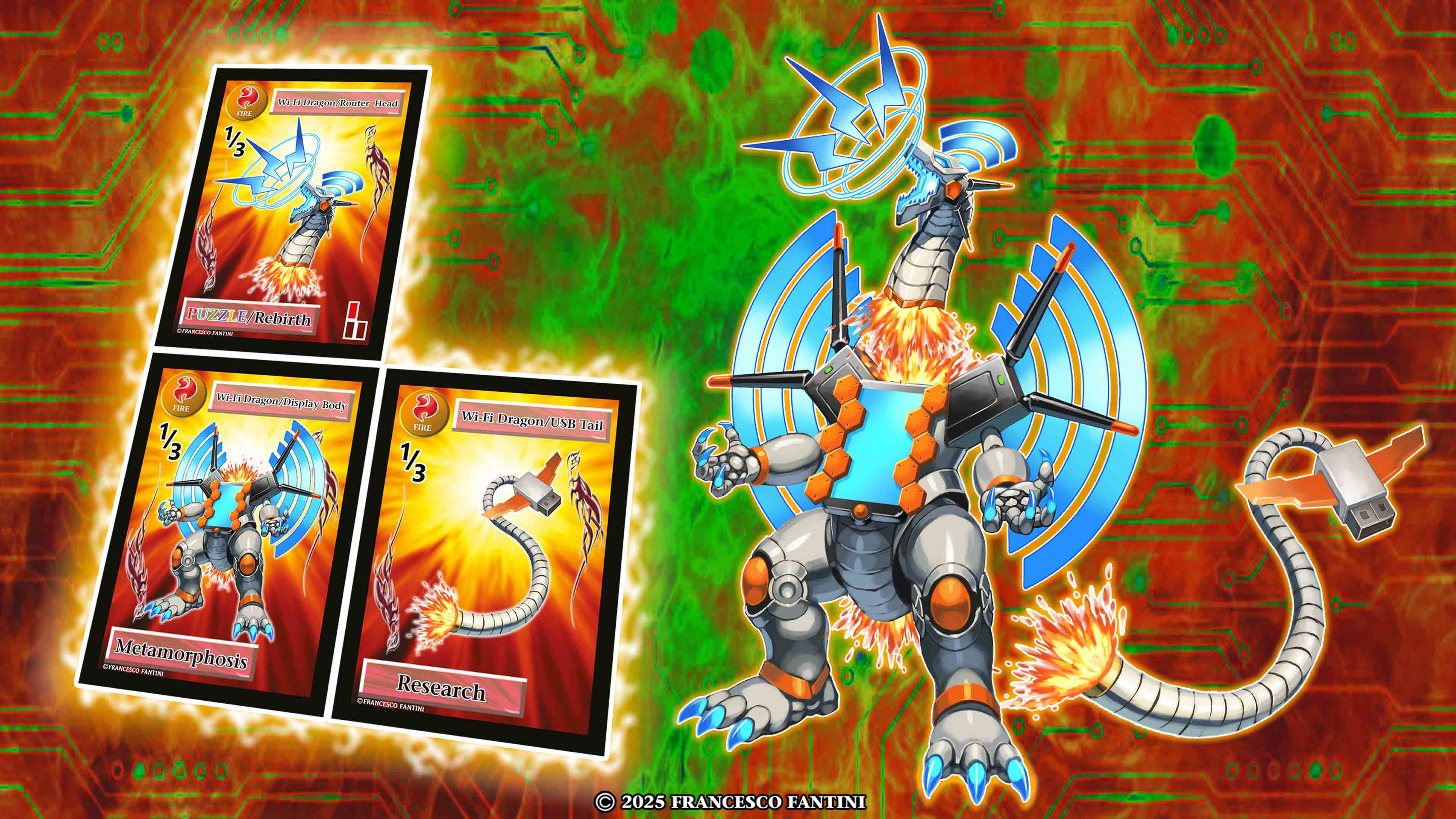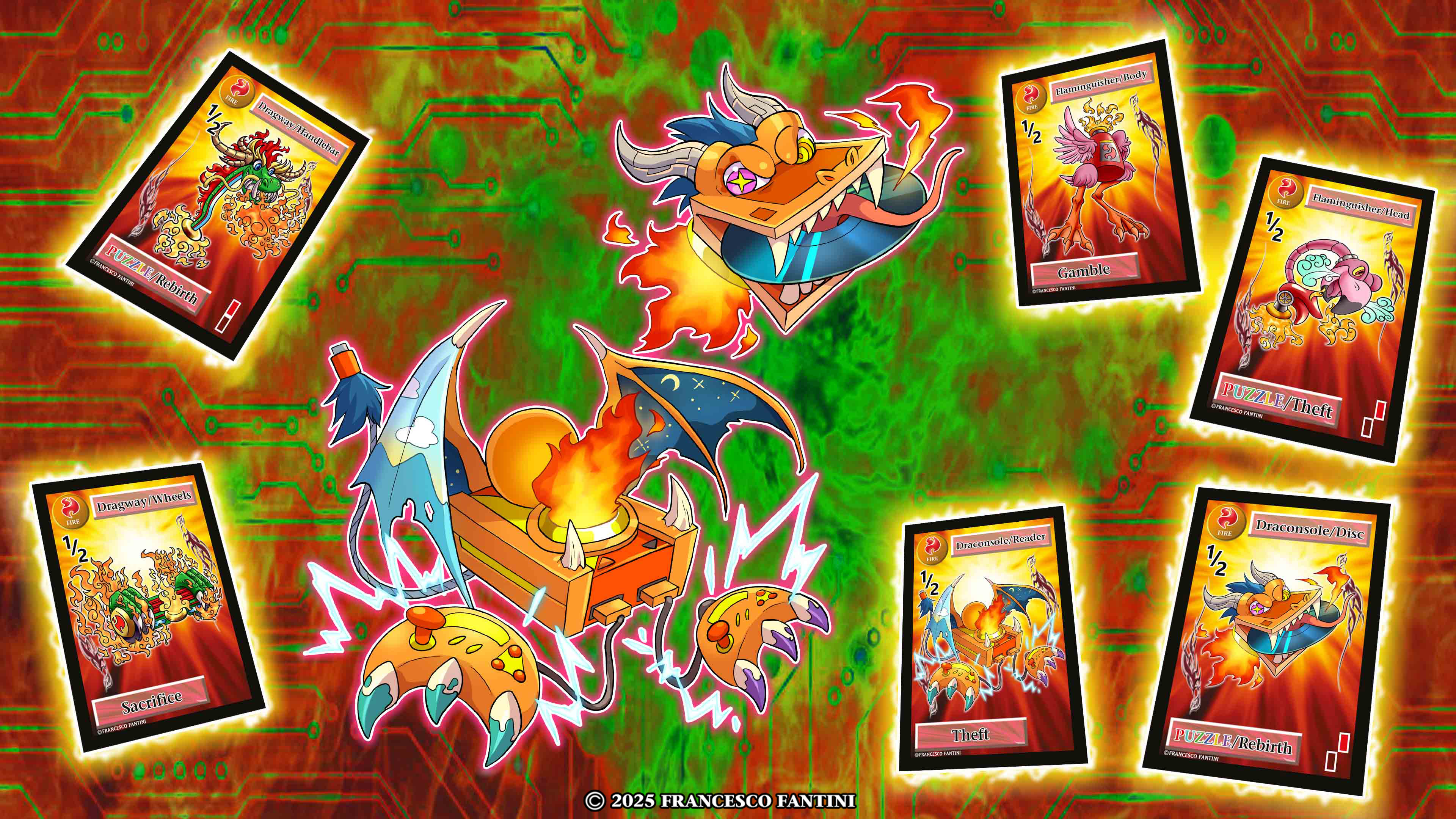 If you love Mecha Dragons, this Elemental Puzzle cardgame will interesting and Fun:https://www.thegamecrafter.com/games/elemental-puzzle-tcg-burning-future-booster-pack