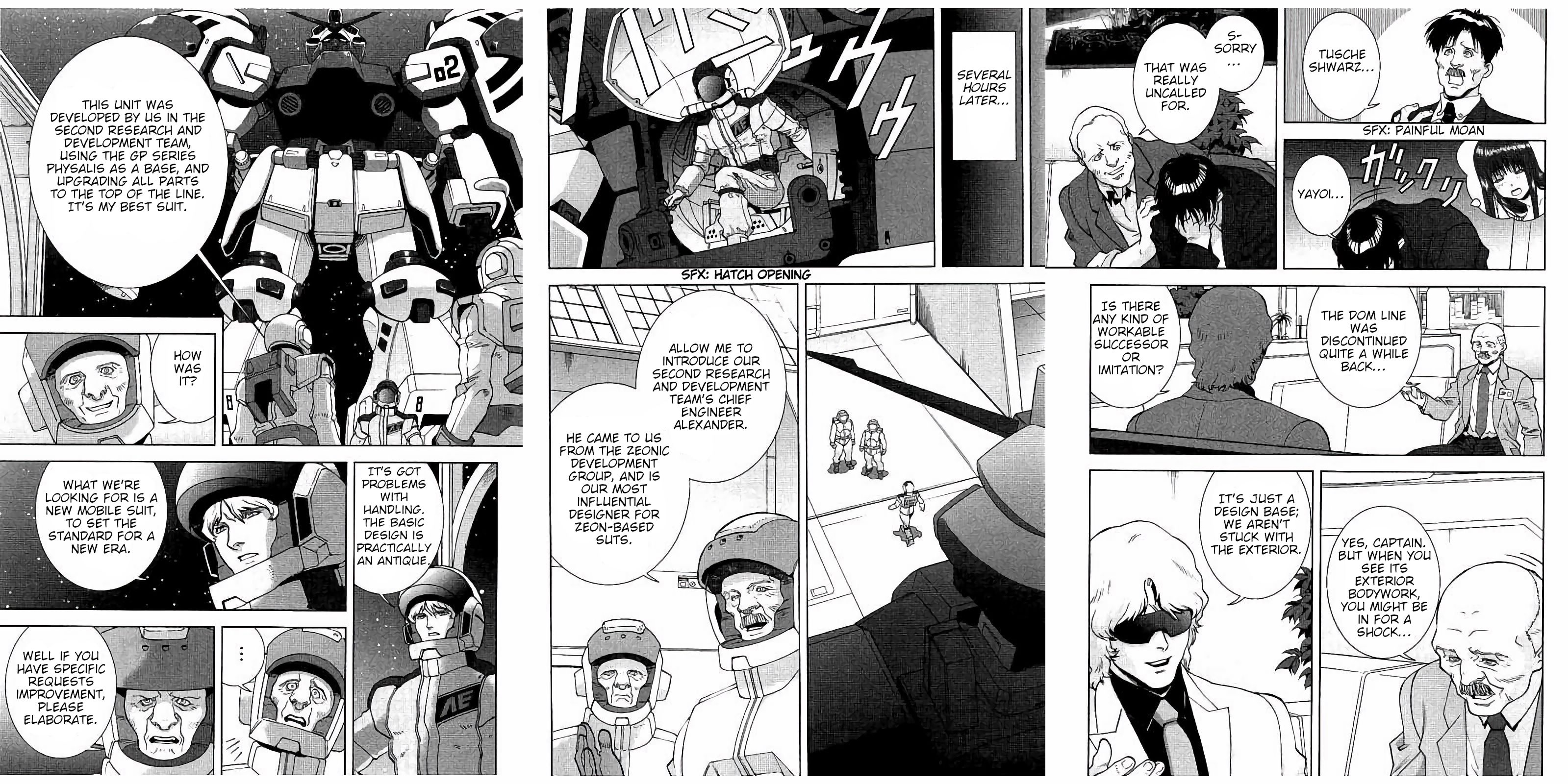 >>23586297In a flashback chapter of Zeta Define, they go a little more crazy. Char meets with Anaheim Electronics in maybe UC 0085 or 0086, finalizing their plans for their new equipment. Char and friends are satisfied with how the Argama is taking shape, but are now asking about new mobile suits, specifically Dom-style MS. AE just so happens to have a spare GP02 on hand that's been modified with newer parts, and Char takes it for a test flight. He's not really happy with the basic design, and has further requests.Anyway, the rest of the chapter plays out by having a newer younger employee take over the reins of the project from the old guy, and she develops the Gamma Gundam prototype based on the changes and feedback.