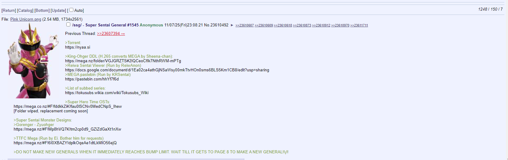 Previous Thread: >>23610492>Torrent:https://nyaa.si>King-Ohger DDL (H.265 converts MEGA by Sheena-chan):https://mega.nz/folder/VGJGRZTS#2IQCeoCfIk7NthRWM-mPTg>Reiwa Sentai Viewer (Run by ReiwAnon)https://docs.google.com/document/d/1Ea02ca4athGjNSaWsy00mkTtvHOn0sms6BLS5Km1CB8/edit?usp=sharing>MEGA pastebin (Run by KRSentai)https://pastebin.com/hhYf7f6d >List of subbed series:https://tokusubs.wikia.com/wiki/Tokusubs_Wiki>Super Hero Time OSTs:https://mega.co.nz/#F!fddkkZiK!fau0lSCNv0MedCNpS_Ihew[Folder wiped, replacement coming soon]>Super Sentai Monster Designs:>Gorenger - Zyuohgerhttps://mega.nz/#F!Mp8hVQ7K!tm2cp0d9_GZiZdGaXt1nXw>TTFC Mega (Run by Ei. Bother him for requests)https://mega.nz/#F!6I0XBAZY!dplkOqeAe1dtLkMlO56ejQ