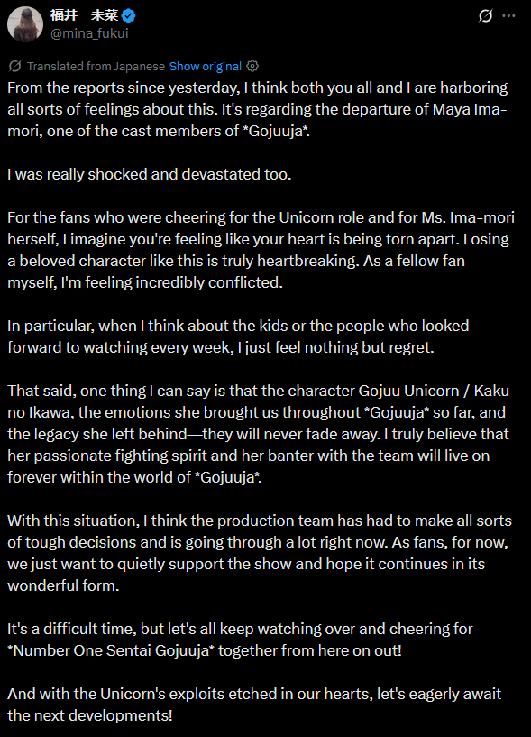 GekiYellow's reponse>https://x.com/mina_fukui/status/1987495089963401429tldr: Instead of worrying what happens now, focus on the loving legacy left behind