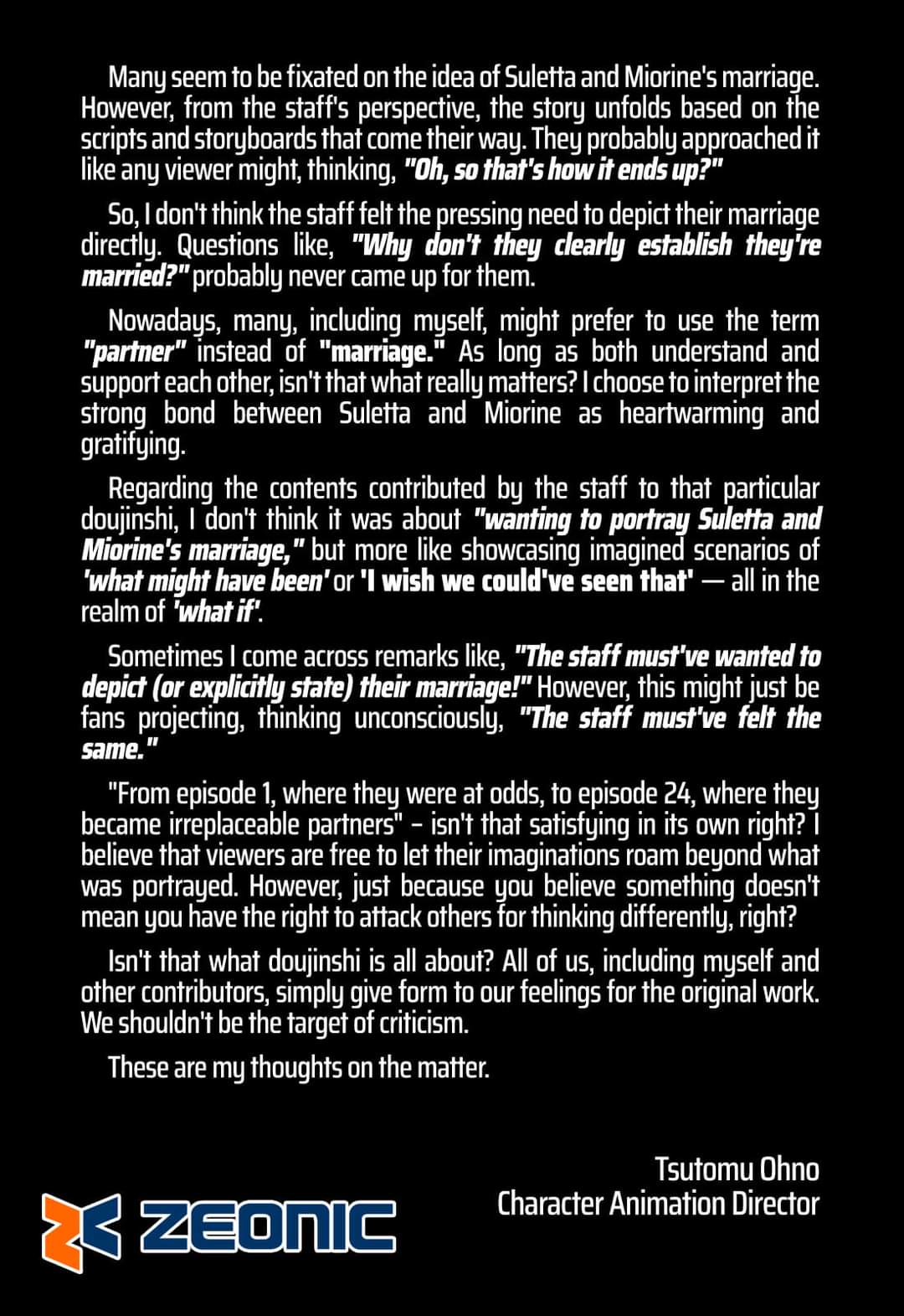 >>23637537>>23637851A director's word that something is coming does not count as an announced project. Only Bandai has the power to decided what it's gonna happen or not and for all we know all these speculated projects can get stalled like the SEED movie or even shelved. We'll only get confirmation when a formal announcement is made and so far we only have Hathaway sequels and FREEDOM ZERO as far as animated projects go.