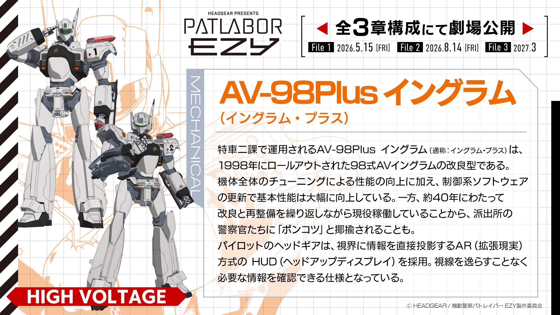 Theatrical release confirmed in a full 3-chapter structure! File 1:May 15, 2026 (Fri) File 2:August 14, 2026 (Fri) File 3:March 2027 https://x.com/patlabor0810/status/2013446383257428163?s=20